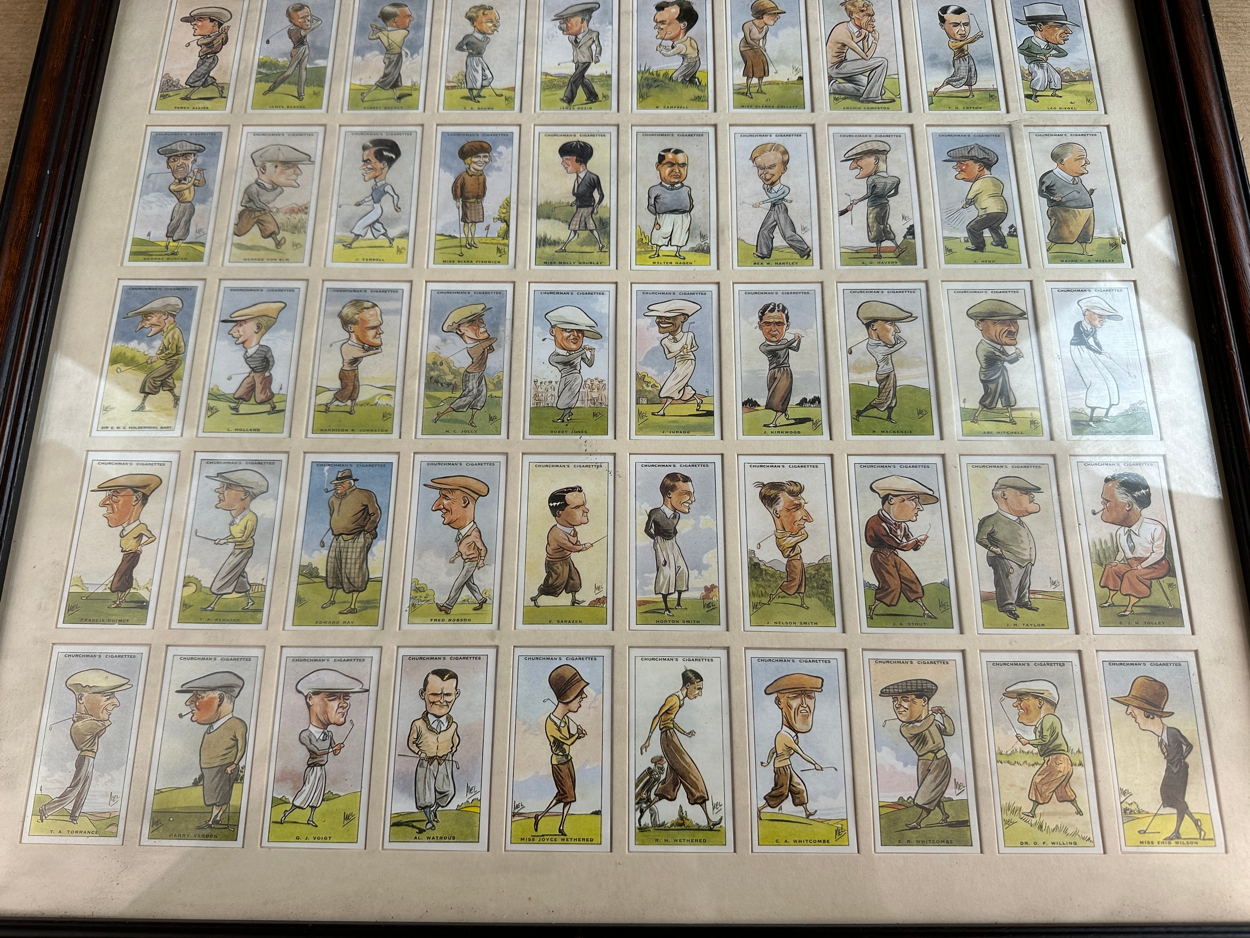 Framed Churchman's Cigarette Golf Cards