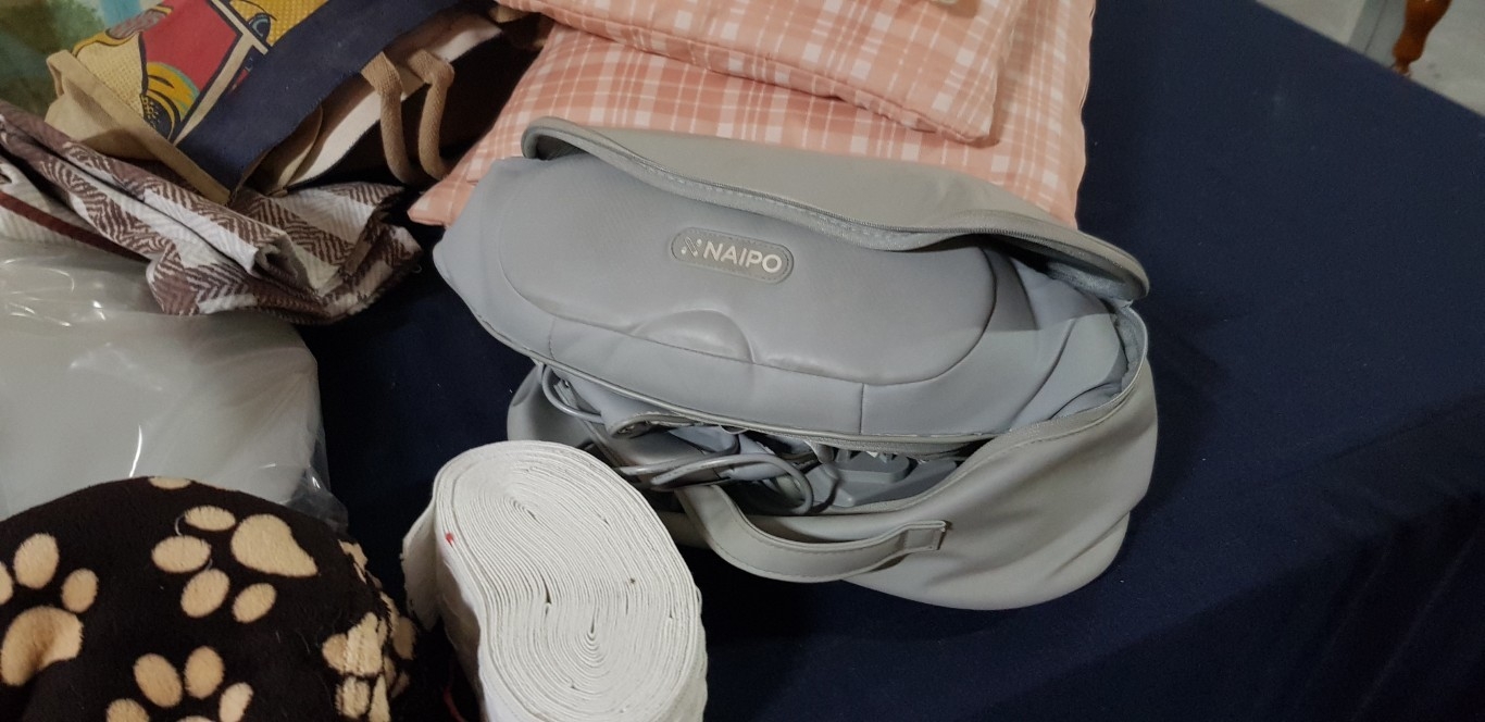 Assortment Of Items, Including A Naipo Neck Massager 4 x Cushions, Curtain Tape, A Picture & Many More.