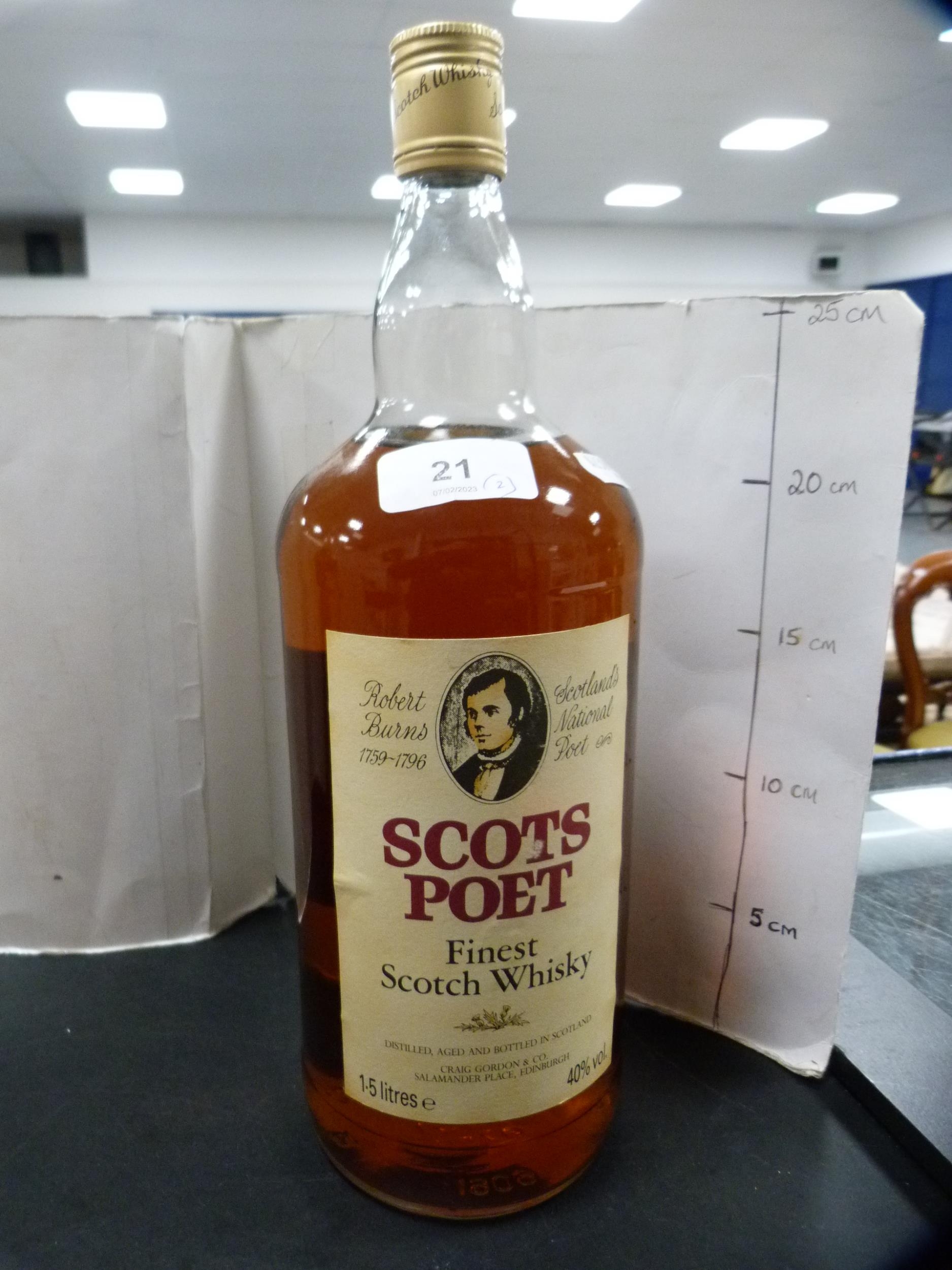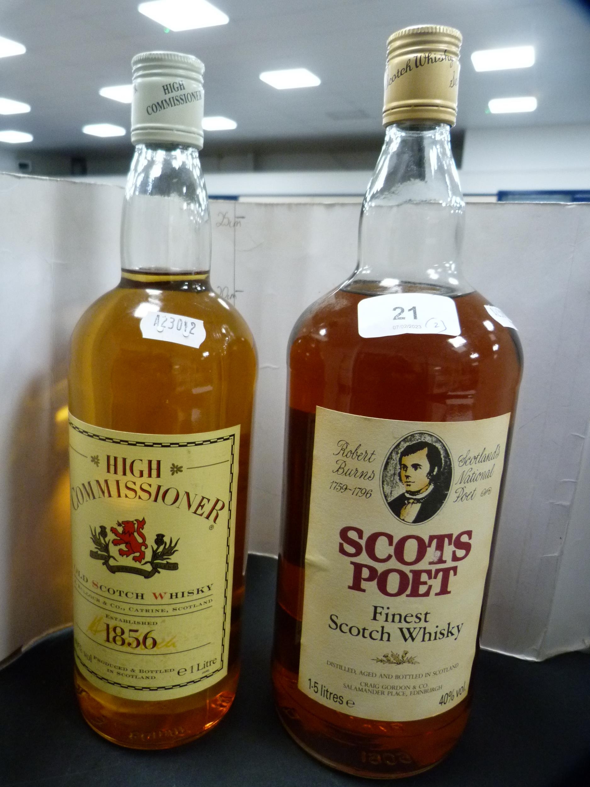Scots Poet Finest Scotch Whisky commemorating Robert Burns, 1.5 litre, and a bottle of High Commissioner Old Scotch whisky, 1 litre. (2)