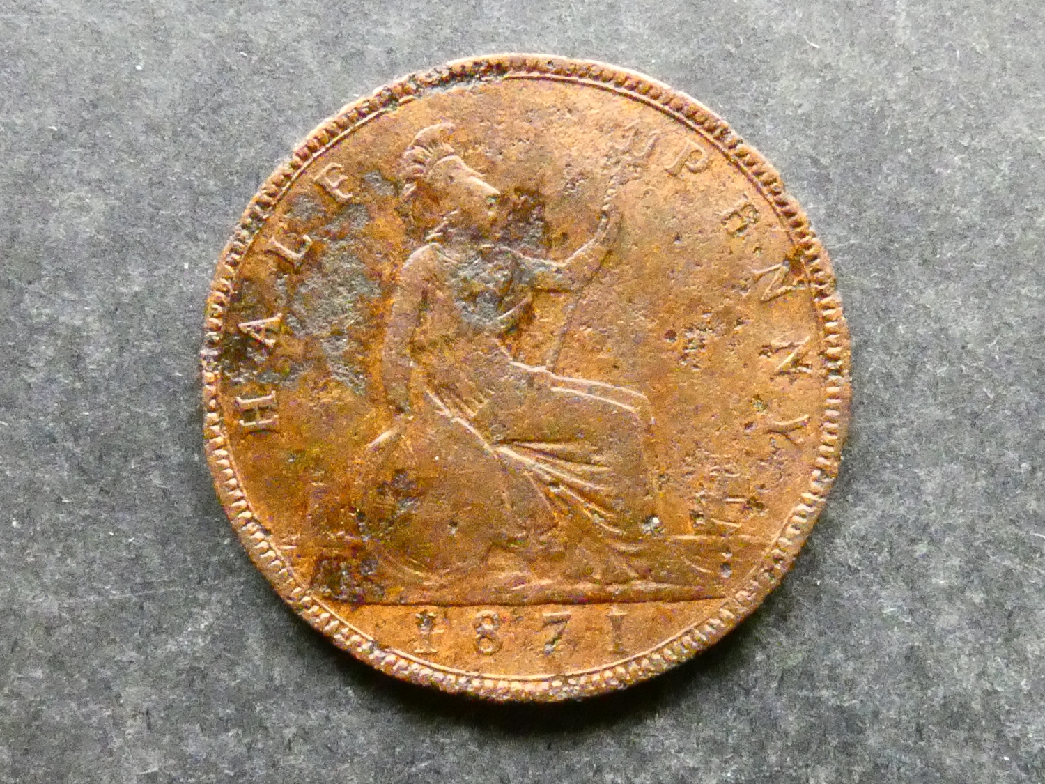 COIN. Great Britain, Victoria (1837-1901), bronze Halfpenny, 1871, obverse 7, reverse G, Freeman-308, S-3956, NVF, surface corrosion, cleaned.