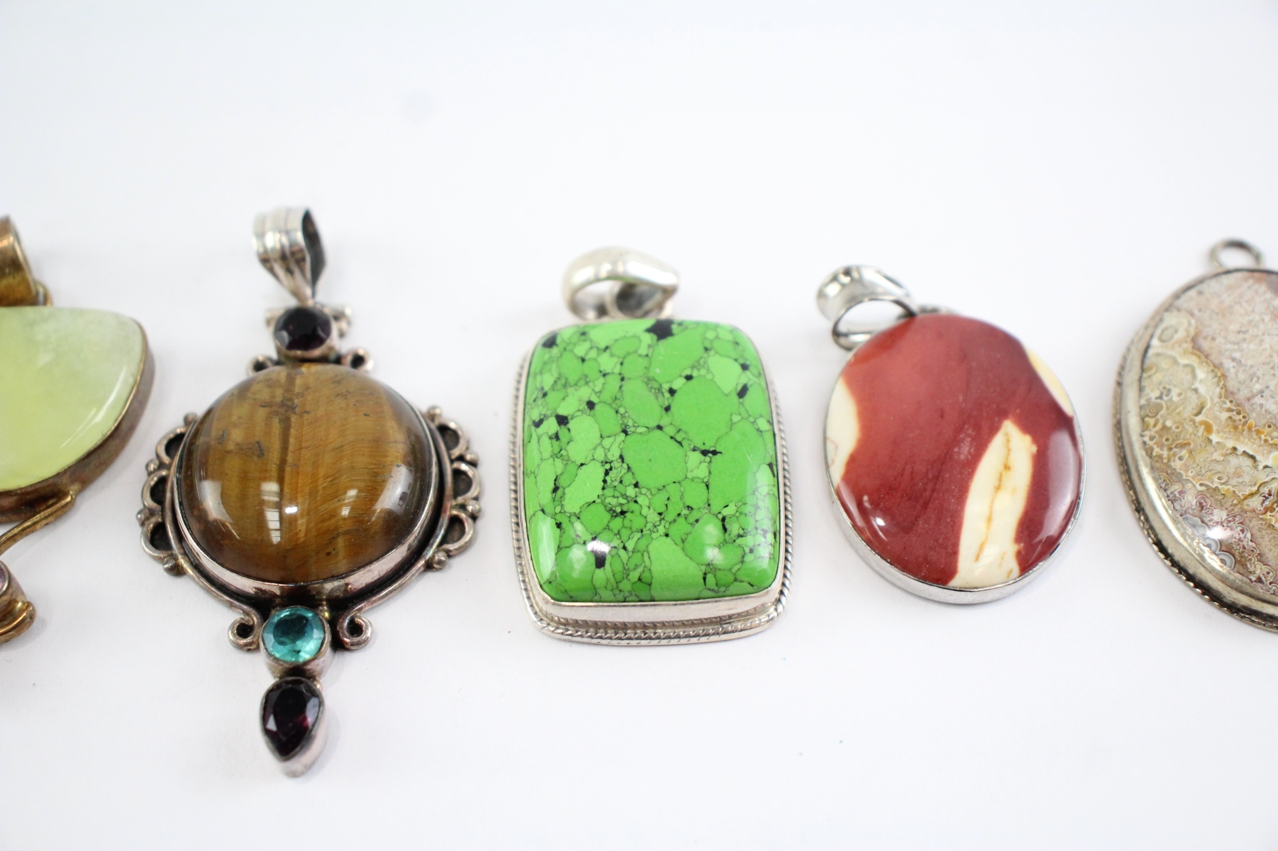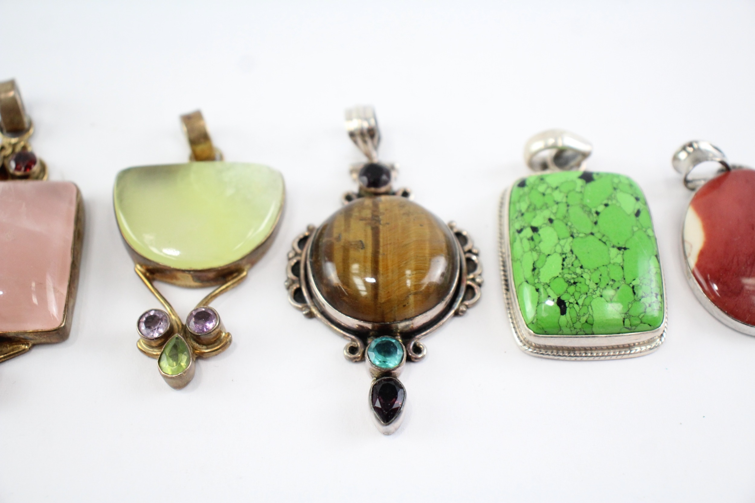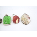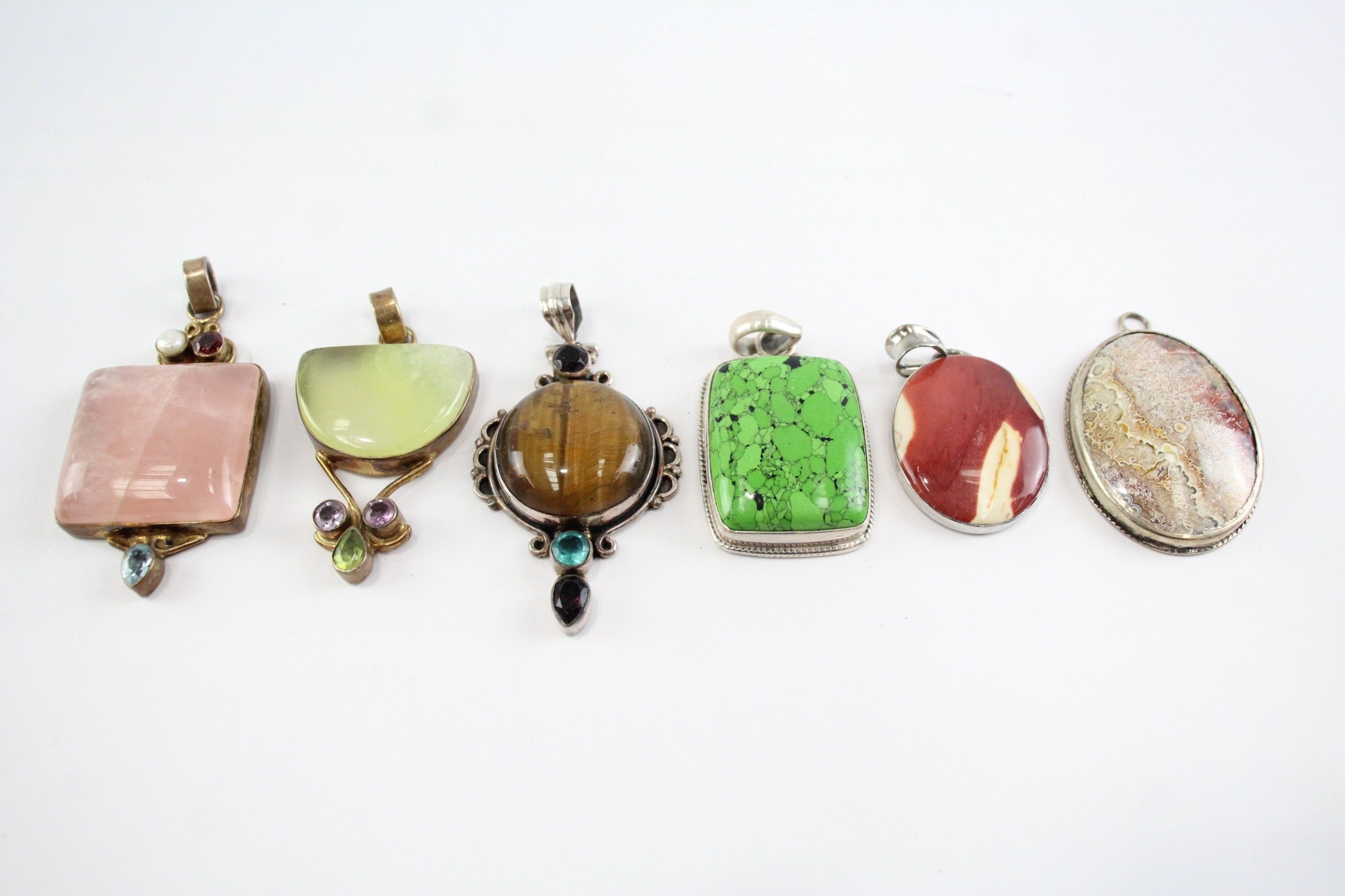 Collection of Sterling Silver Gemstone Pendants, inc. Tigers Eye, Jasper, Quartz x 6 (110g)