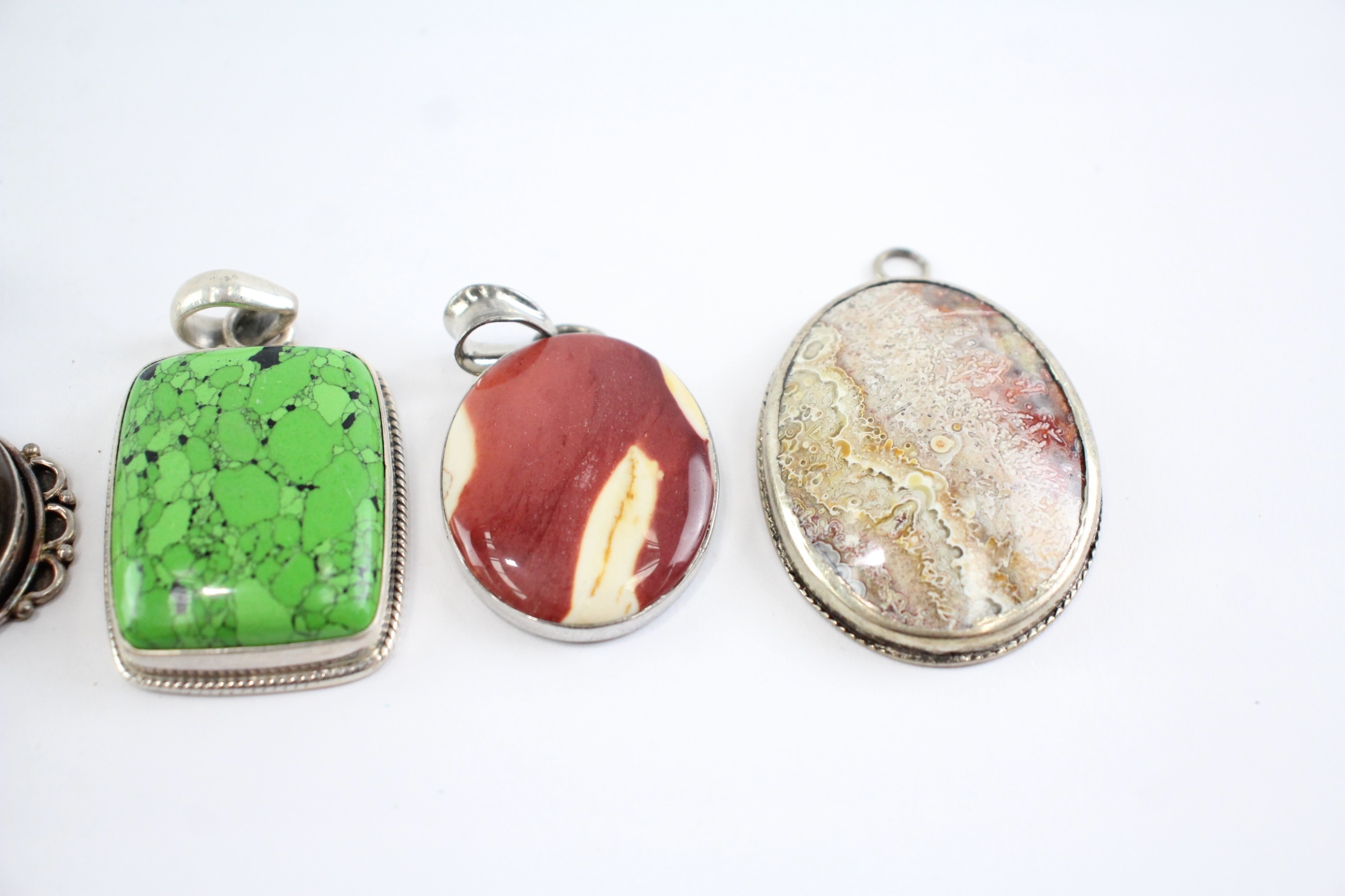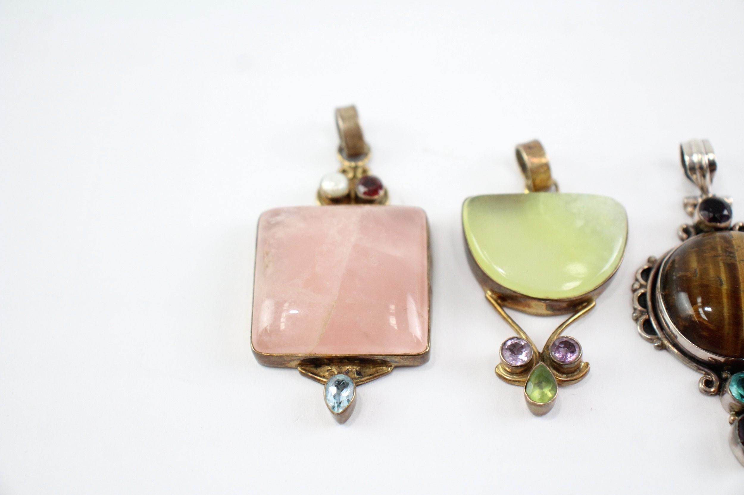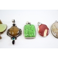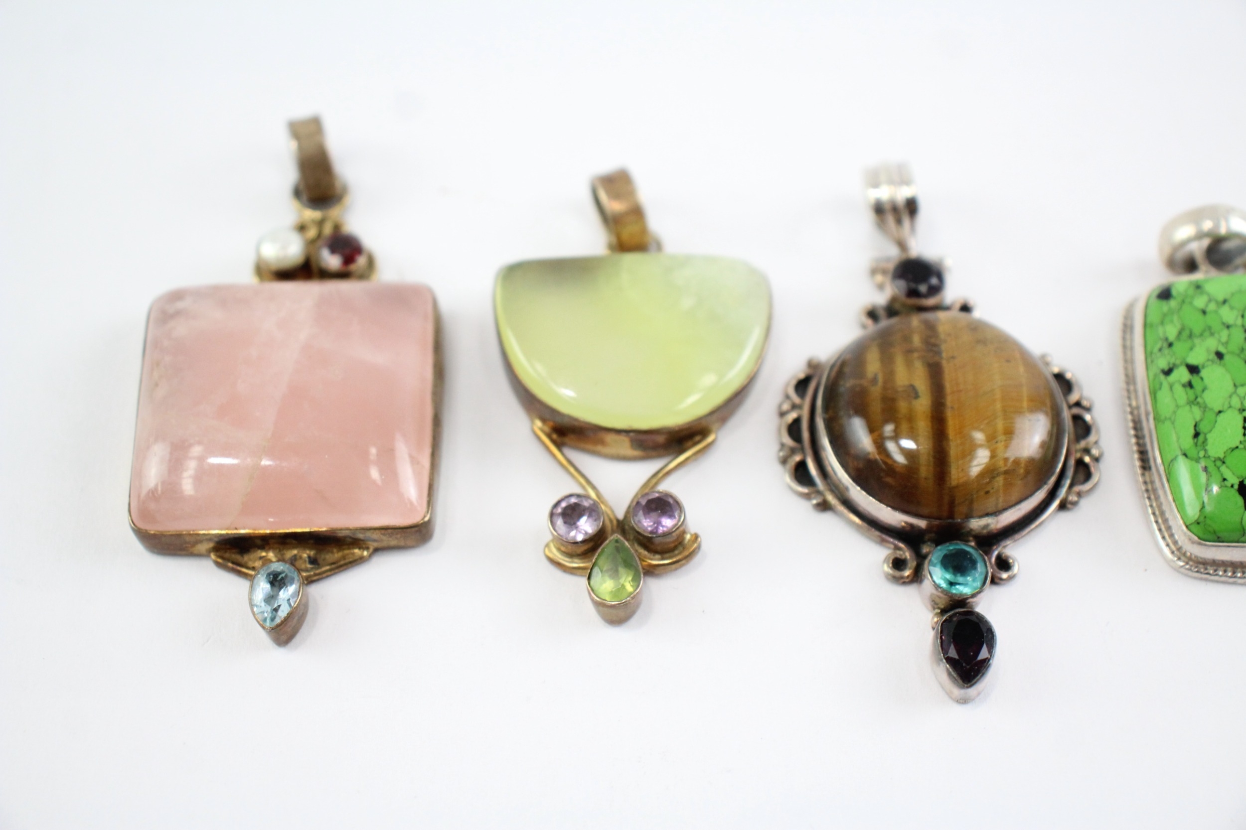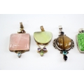 Collection of Sterling Silver Gemstone Pendants, inc. Tigers Eye, Jasper, Quartz x 6 (110g)