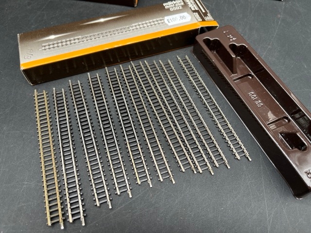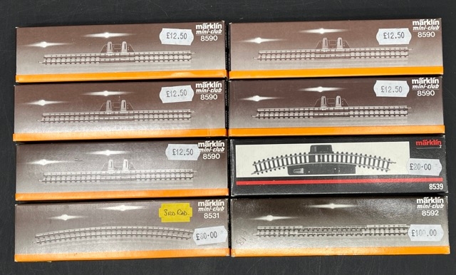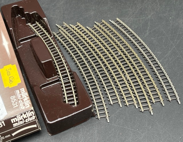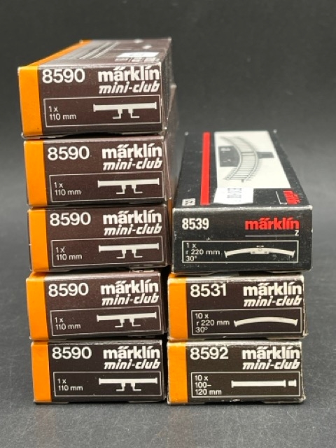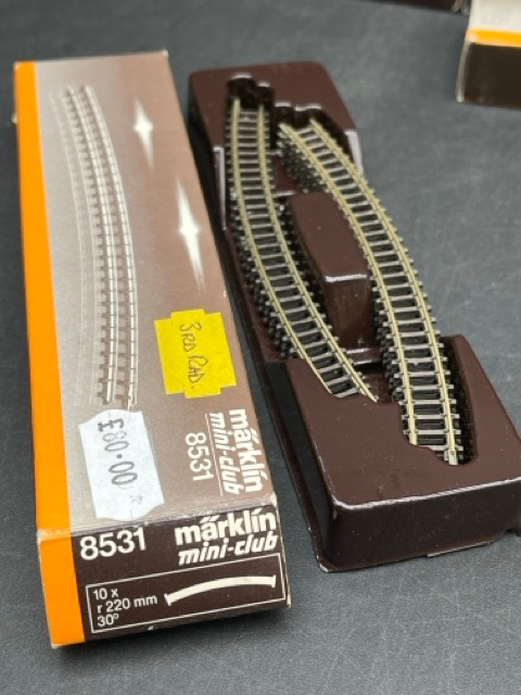 8 boxes of Marklin Z scale track 8531 7xr220mm 30deg 8592 10...
