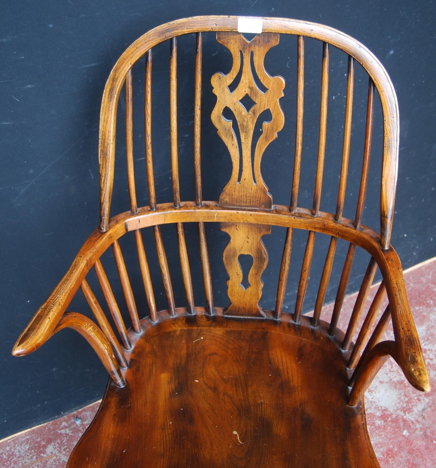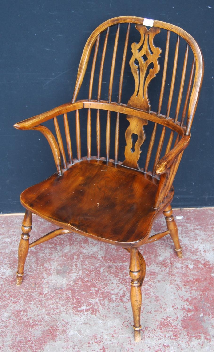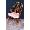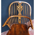19th century ash and elm Windsor armchair, the hoop stick back with a pierced splat and dish seat, on turned supports with adjoining hoop under stretcher, 101cm high.