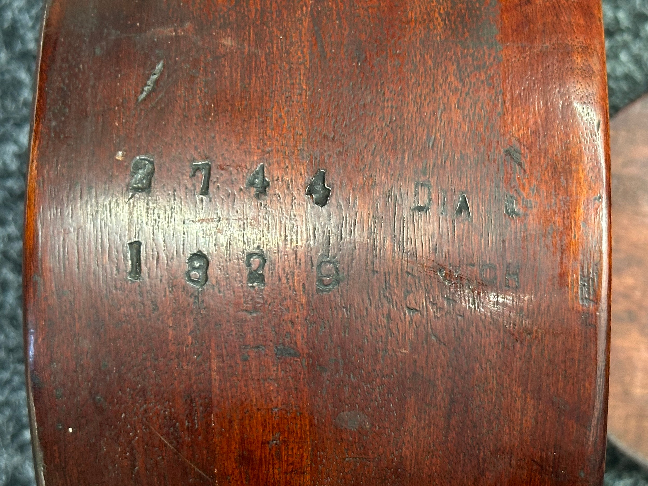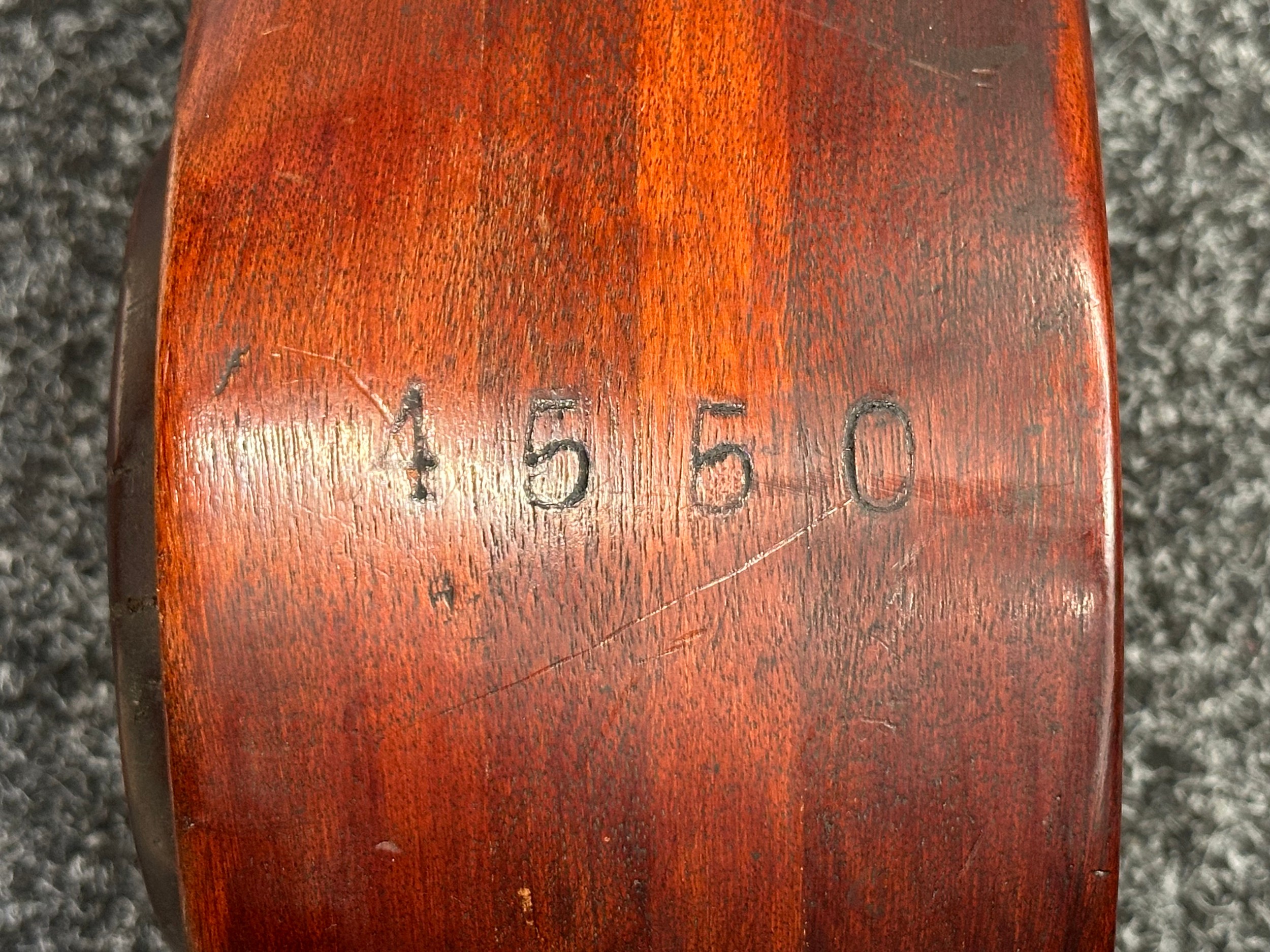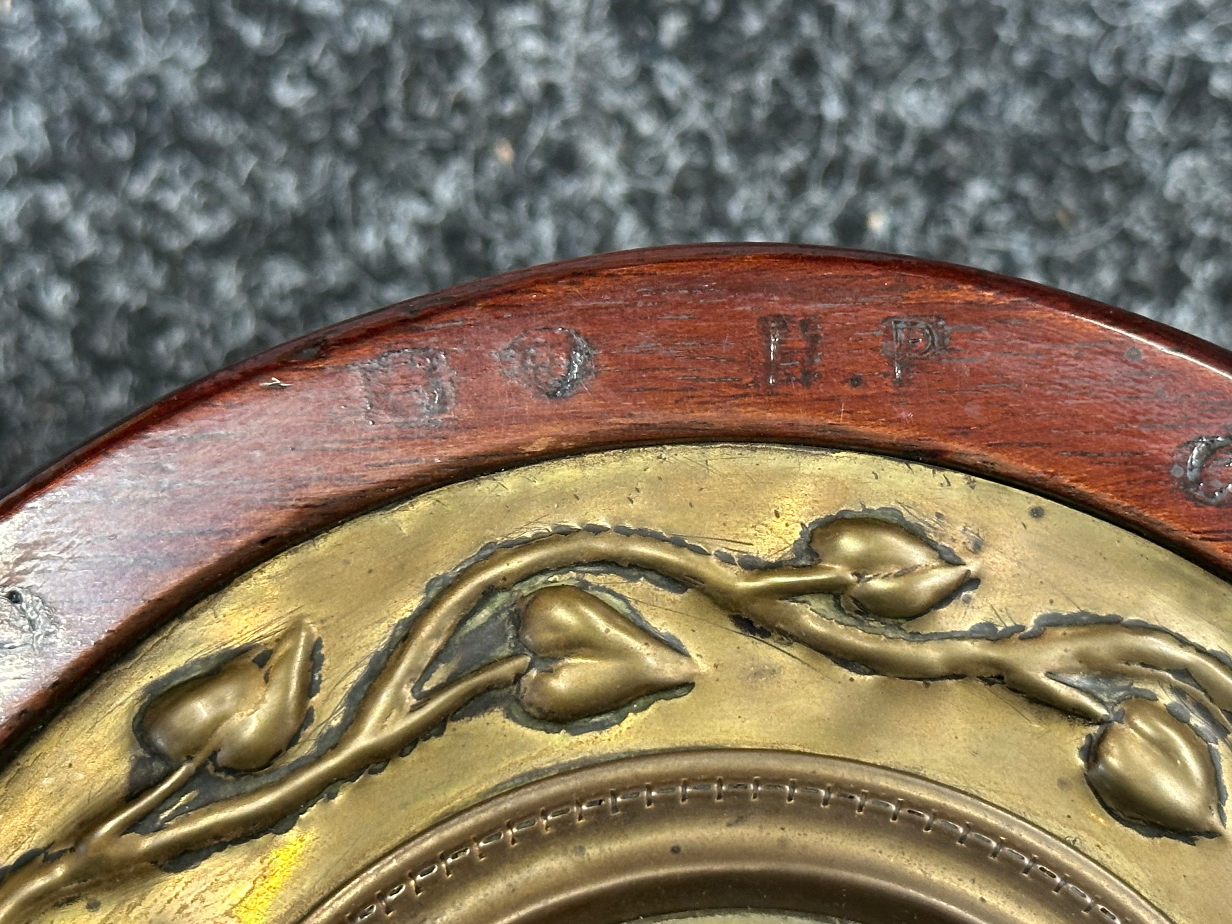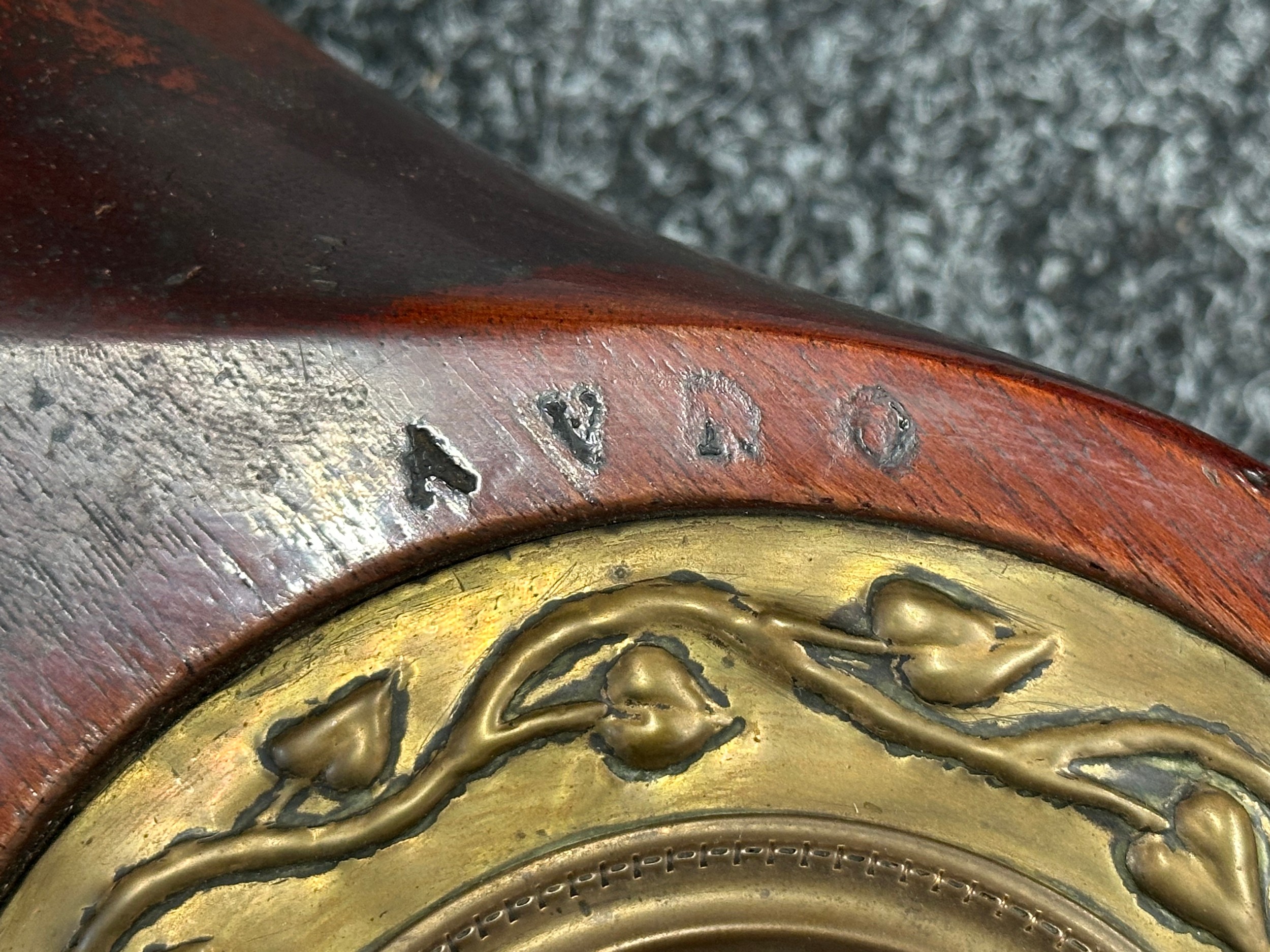 WW1 British Royal Flying Corps Trench Art Propellor Boss Clock made from an AVRO Propeller for the 80 HP Clerget Engine. Well marked. Fitted with a period clock, missing winder. Overall Height 290mm. Overall Width 180mm.
