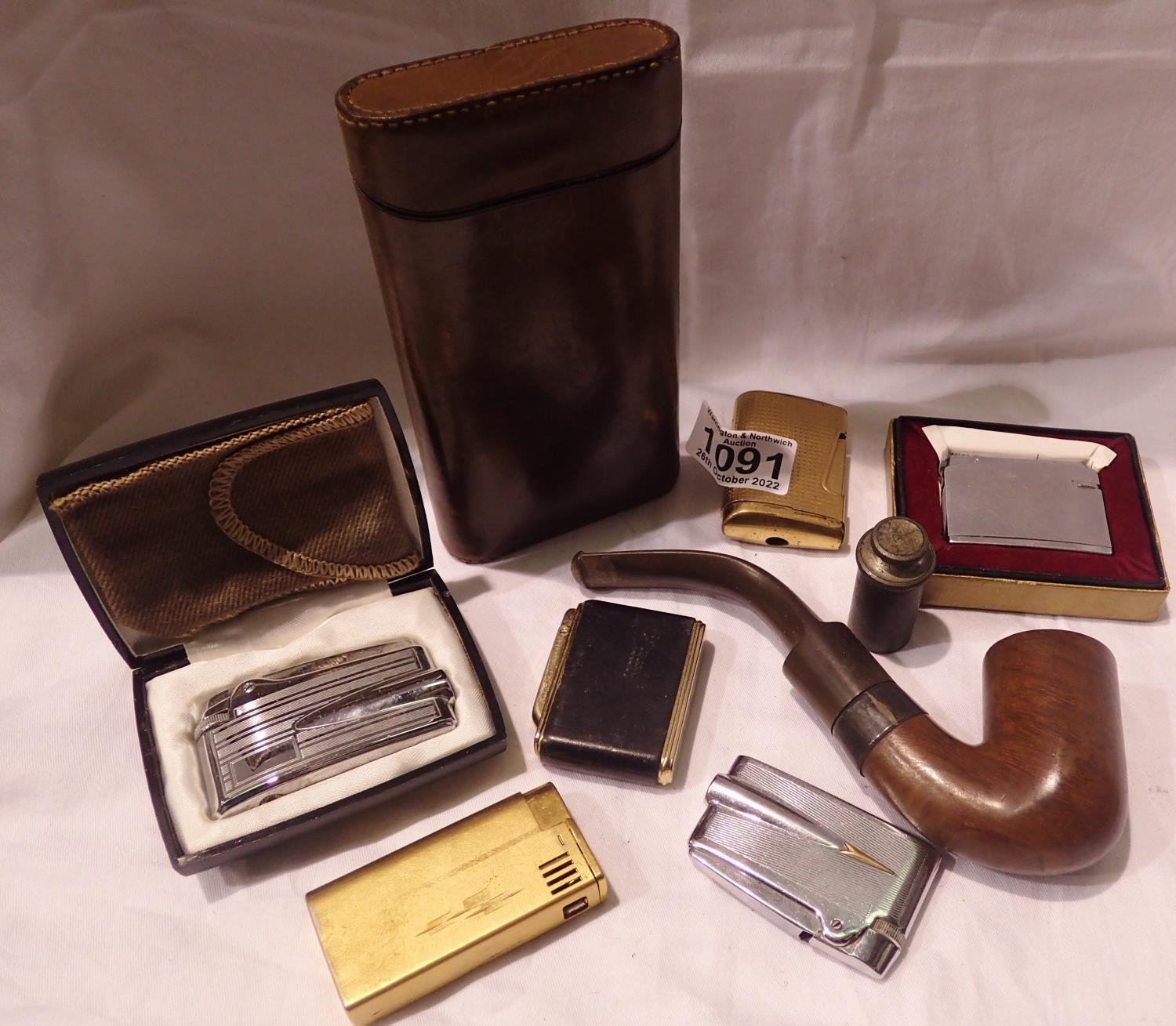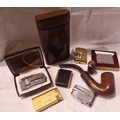 Smoking accessories, including vintage cigarette lighter, briar pipe with a silver collar etc, Brands on pipes BBB, A.F. P&P Group 2 (£18+VAT for the first lot and £3+VAT for subsequent lots)