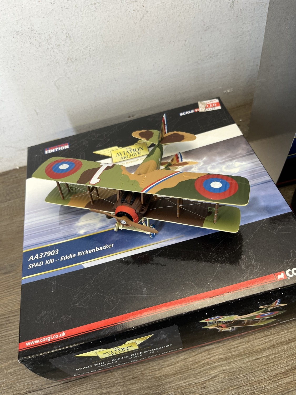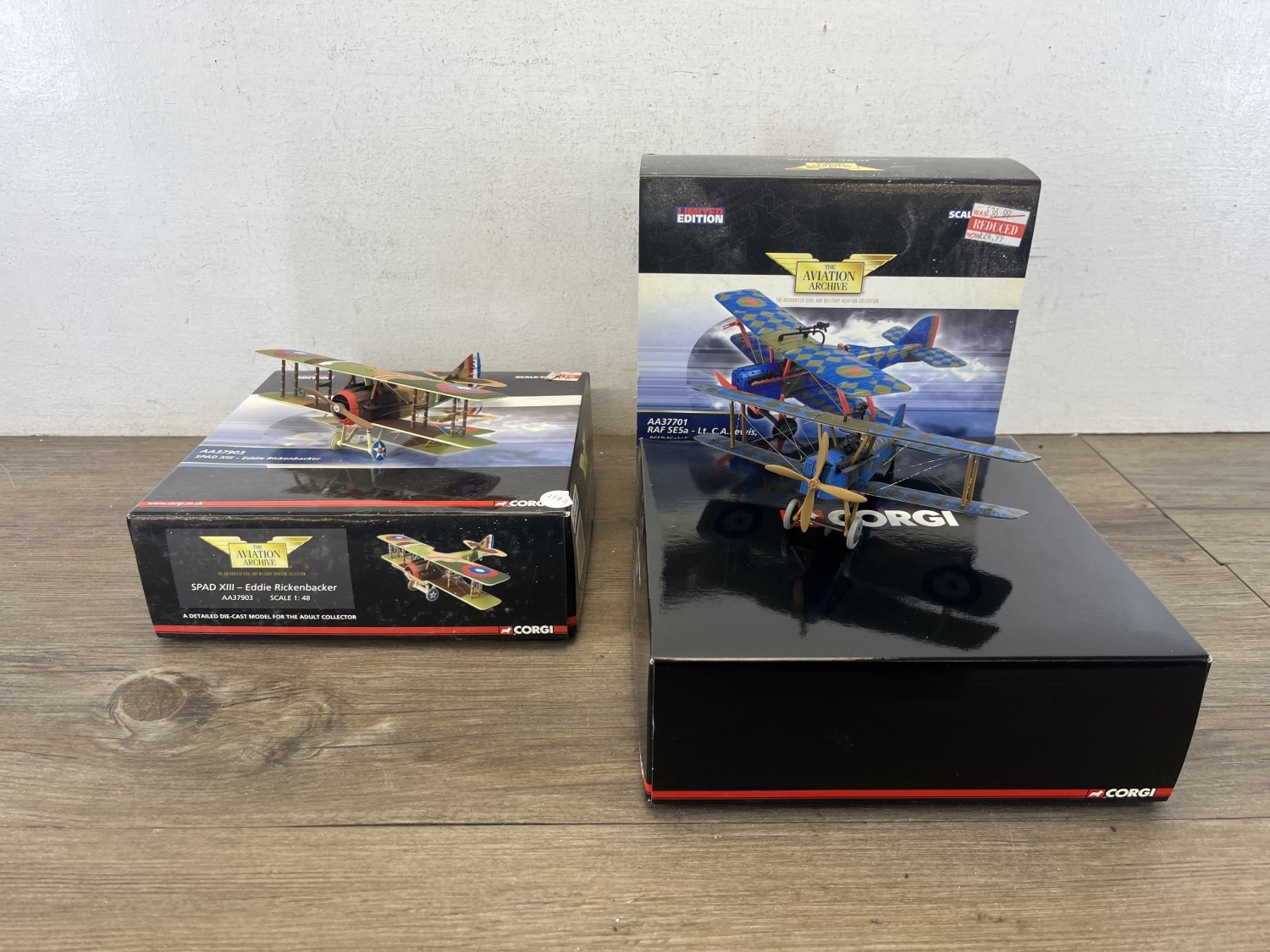 Two boxed Corgi limited edition scale 1:48 The Aviation Archive model aeroplanes, one AA37903 SPAD XIII-Eddie Rickenbacker and one AA37701 RAF SE5a - Lt. C.A. Lewis, B658 Nightfighter, No. 61 Squadron Home Defence 1918