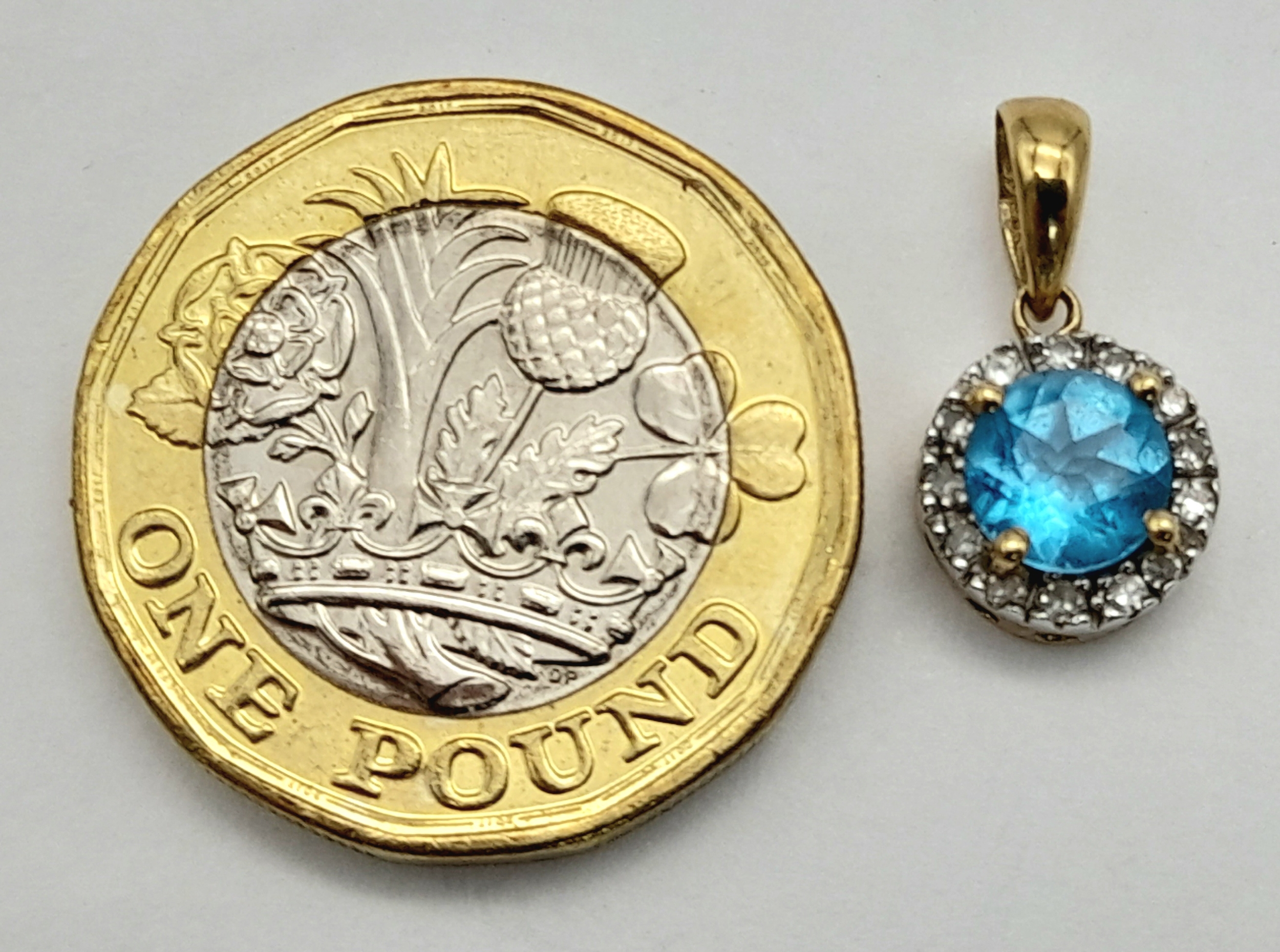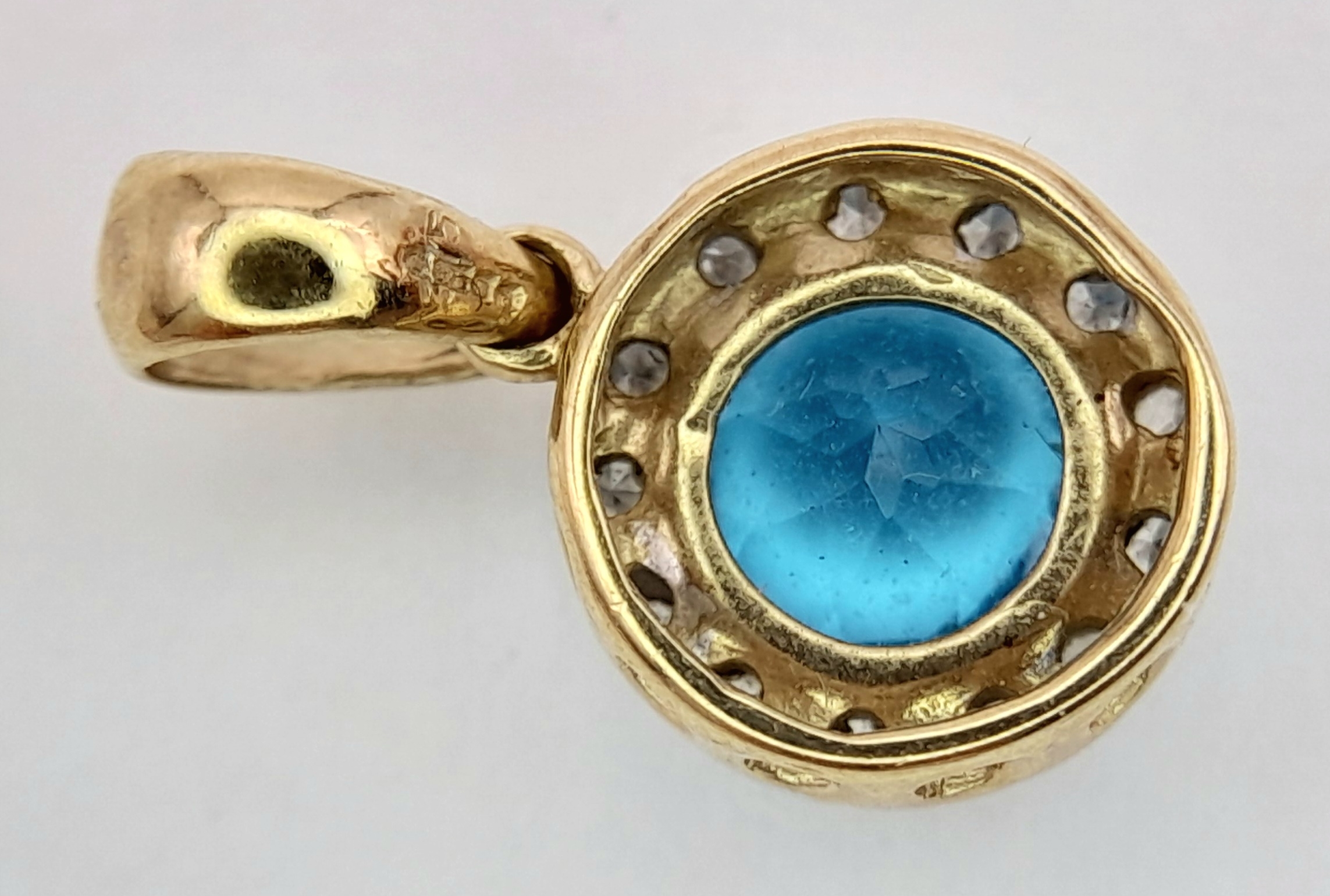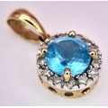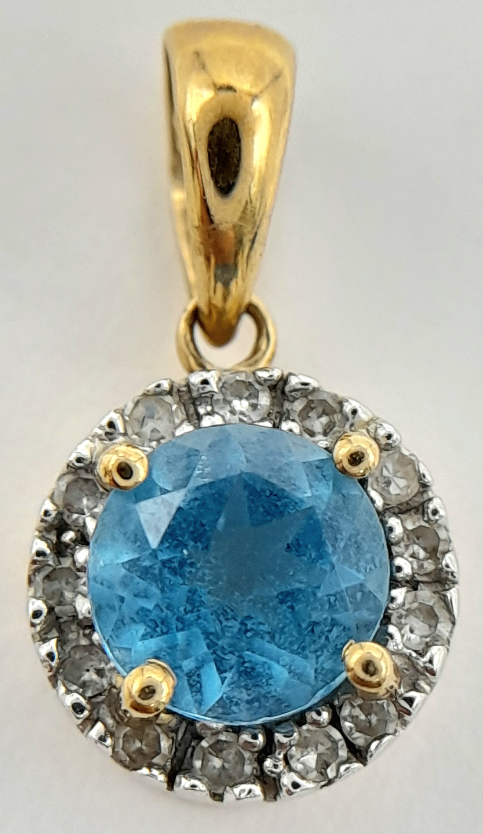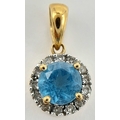 A 9K Yellow Gold Aquamarine and Diamond Pendant. 17mm. 1g.