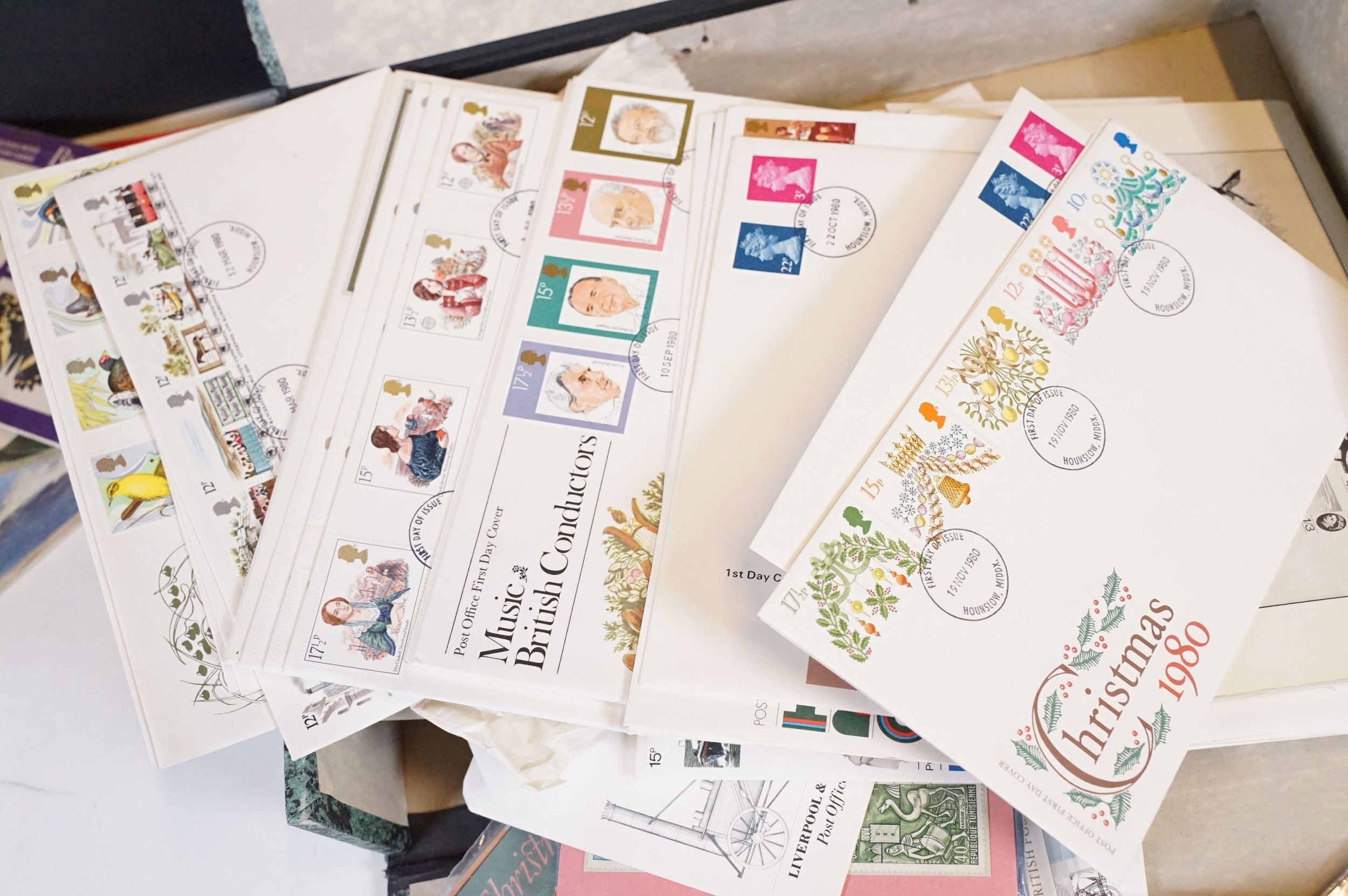 A small collection of United Kingdom first day covers and presentation packs together with a selection of tea cards.