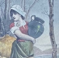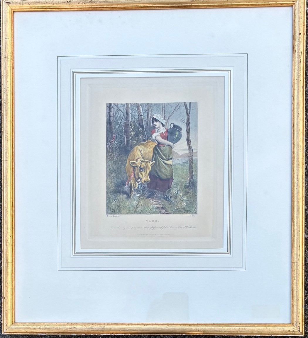 After Edwin James Douglas (Scottish 1848-1914) Sark milkmaid, coloured steel engraving, 25 x 21cm