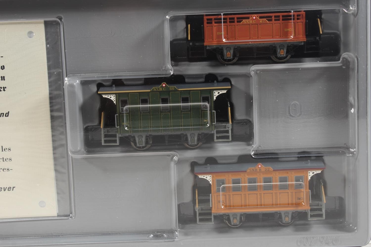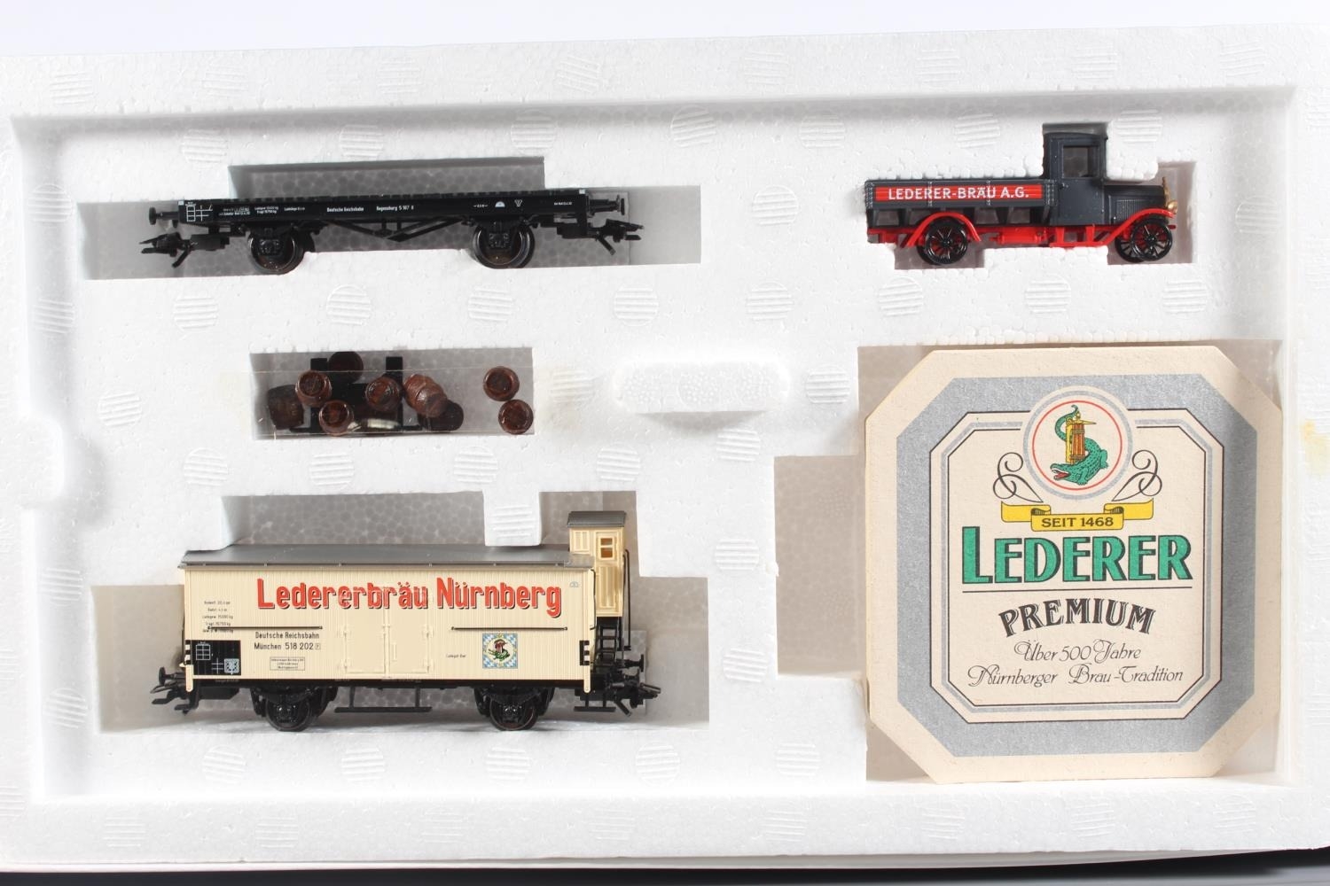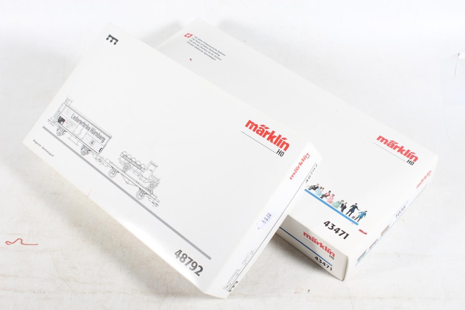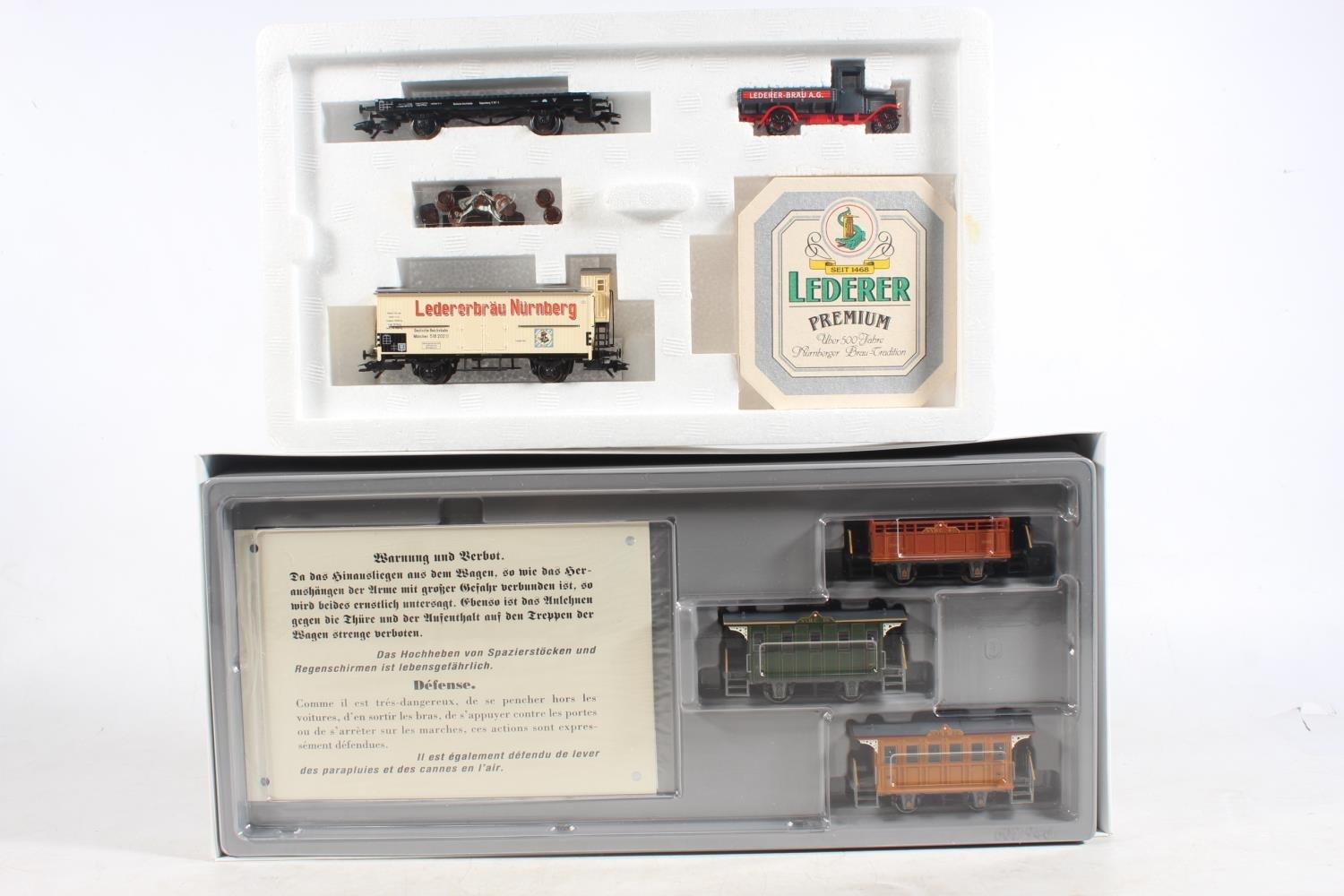 Marklin of Germany digital HO scale model railways rolling stock sets to include 43471 'The First Swiss Train' three passenger car set and 48792 'Beer Transport Car Set', both boxed. (2)