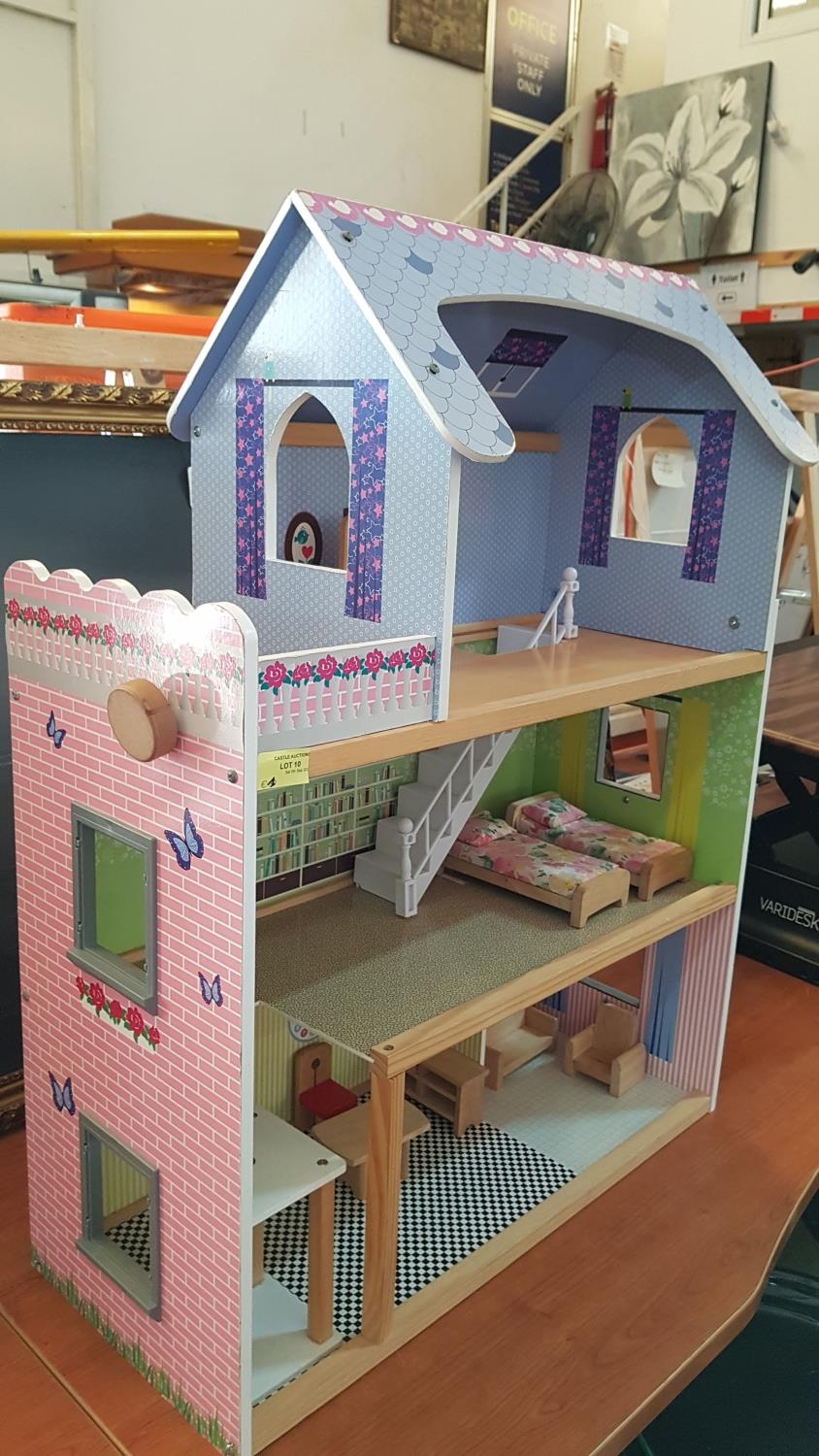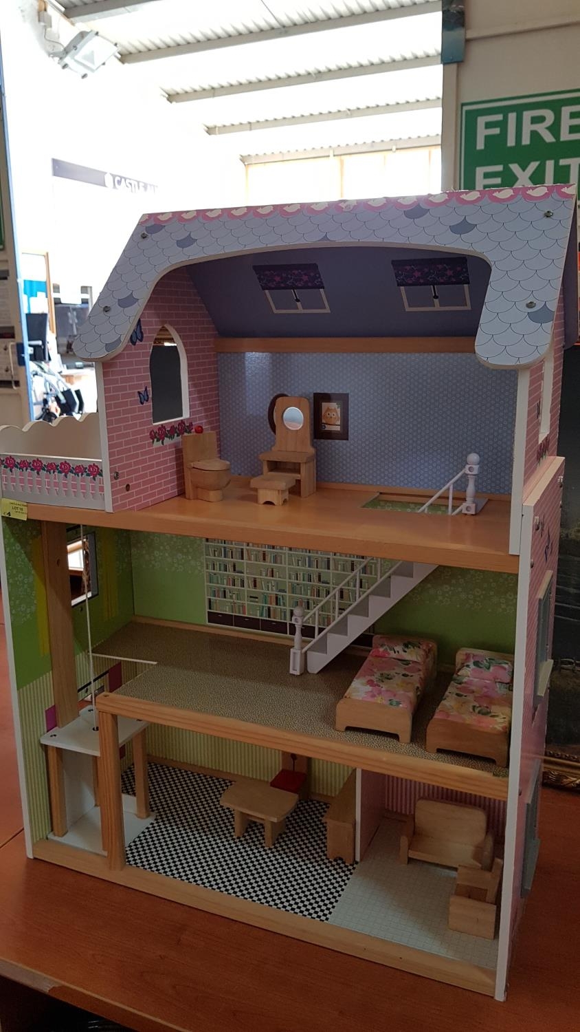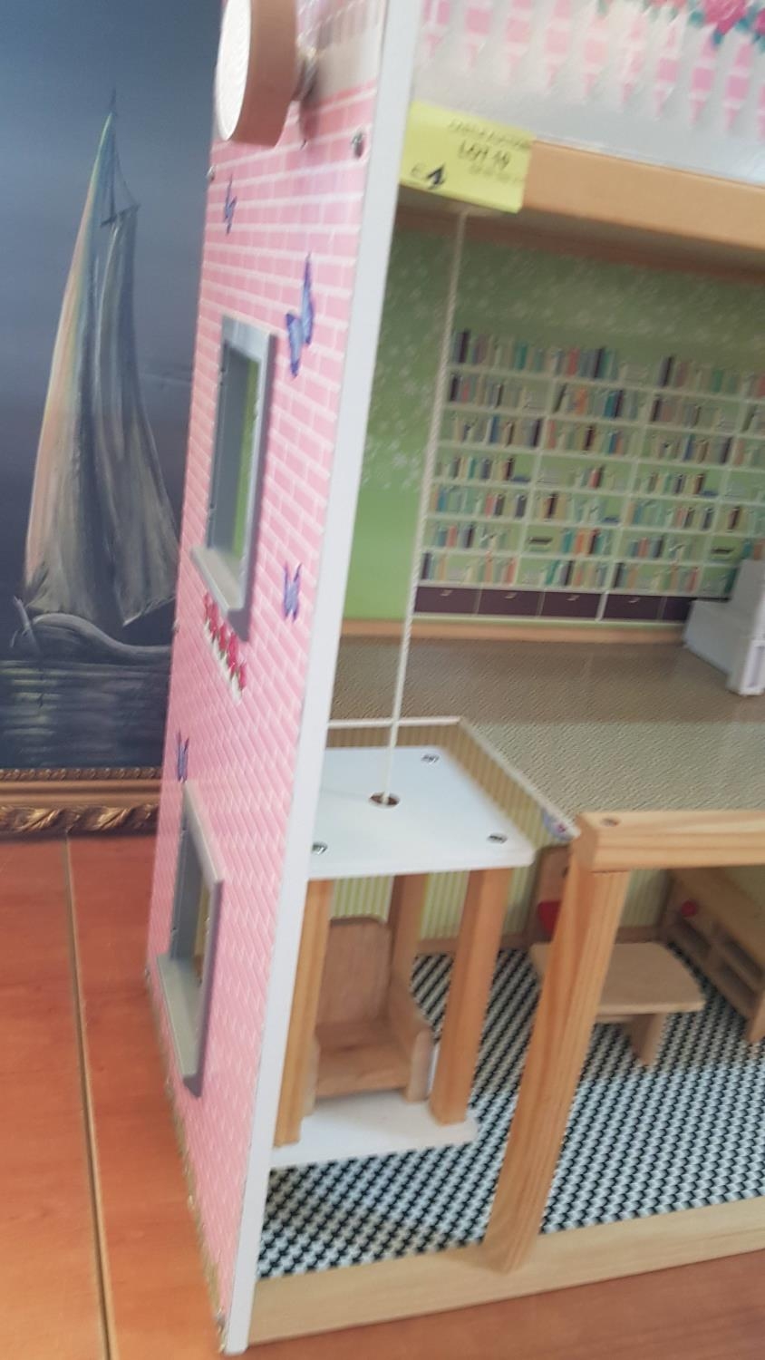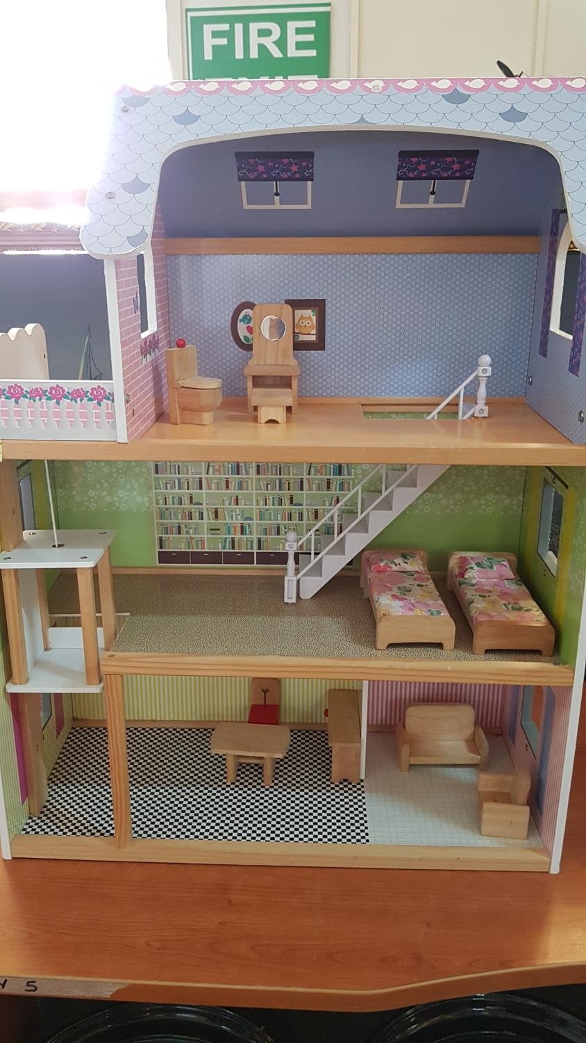 Wooden 3-Storey Dolls House with Wooden Furniture and Lift (26,5cm x 61cm x 80cm)