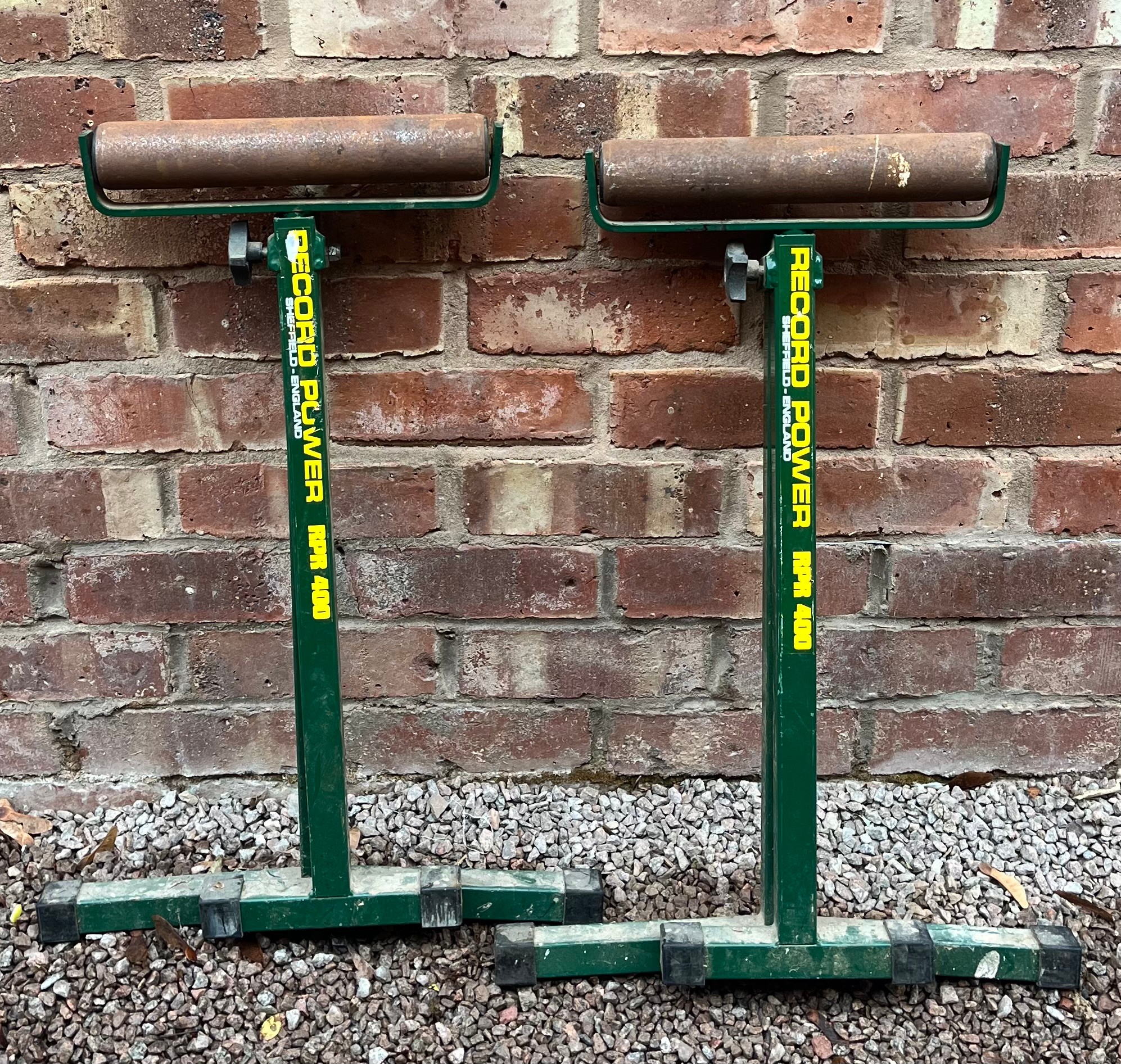 PAIR OF RECORD POWER FOLDING TRESTLE ROLLERS