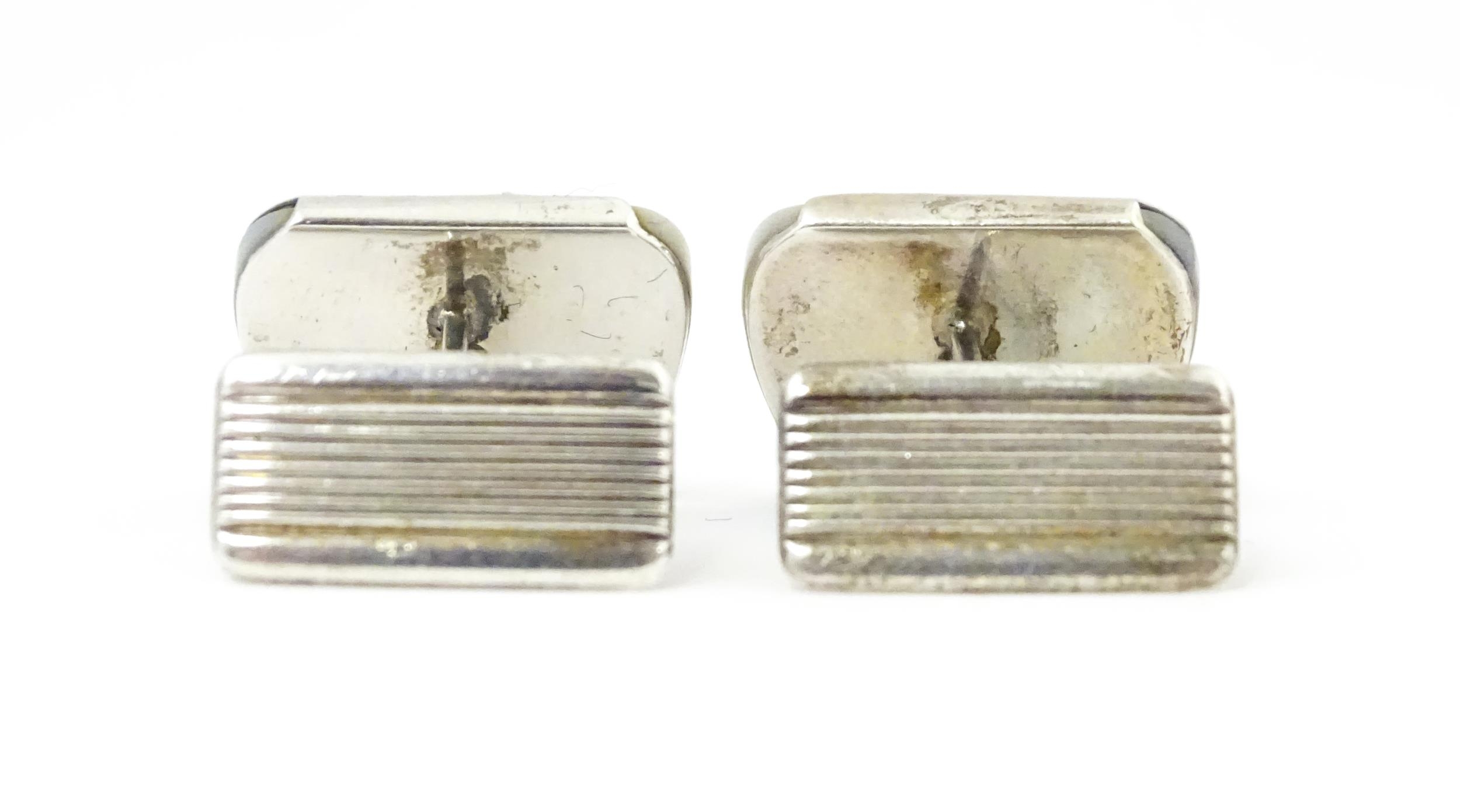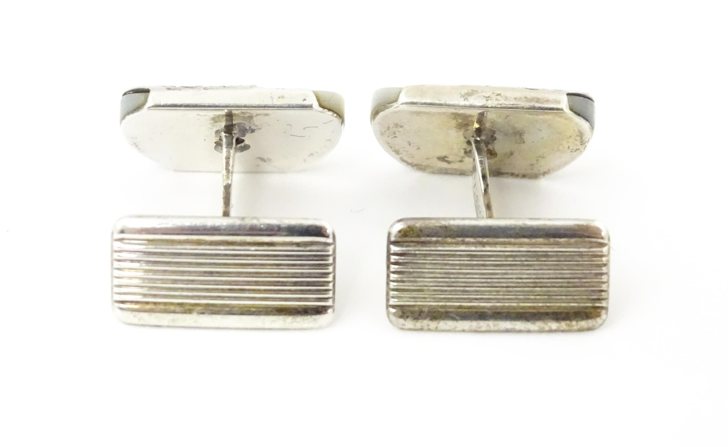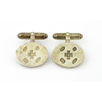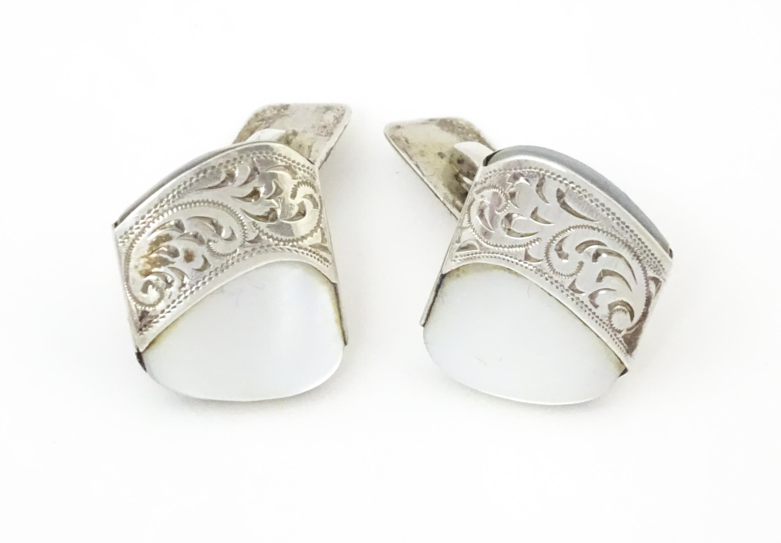Scandinavian silver: A pair of Danish .830 silver cufflinks with mother of pearl detail, maker Christian Veilskov