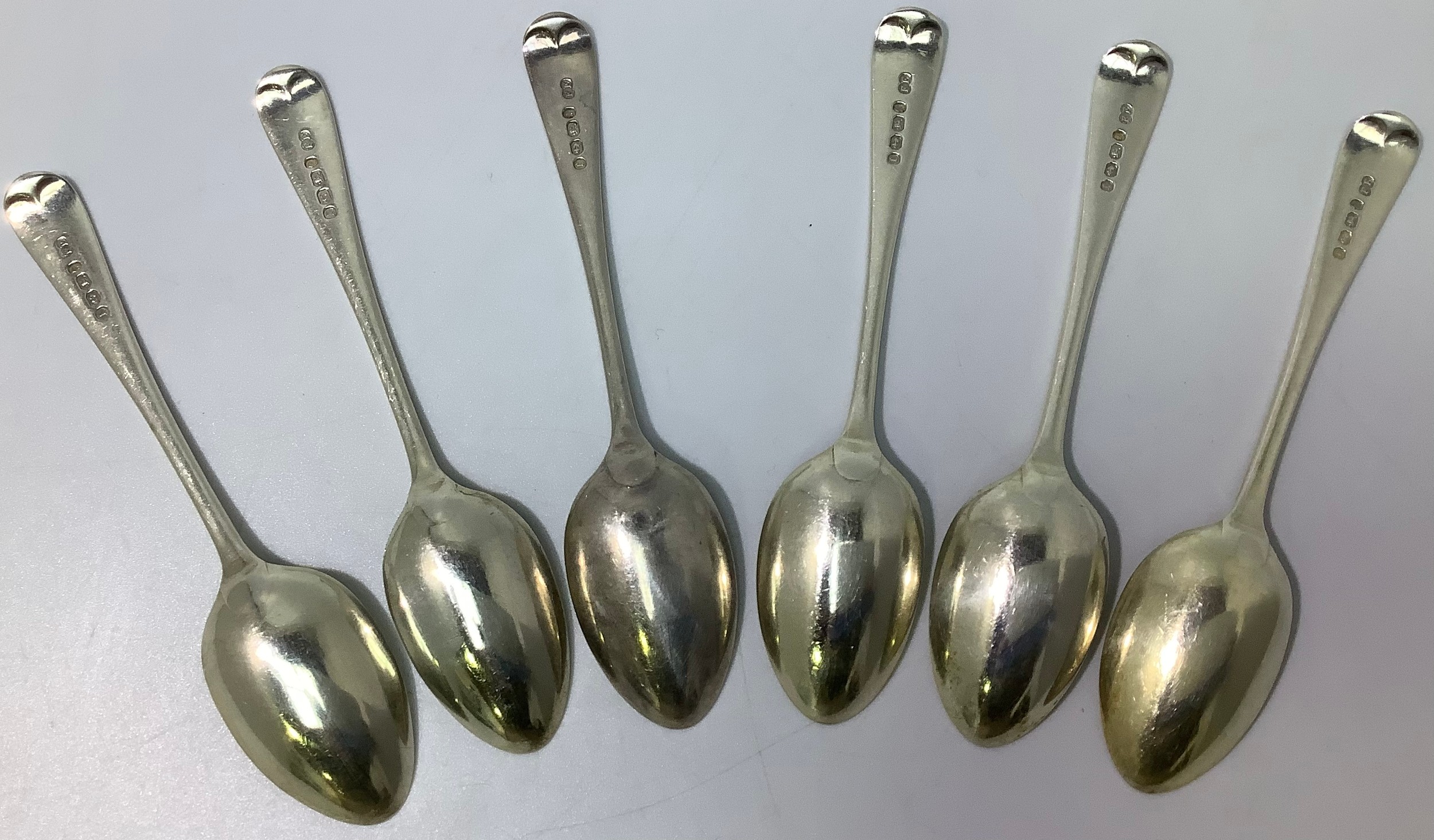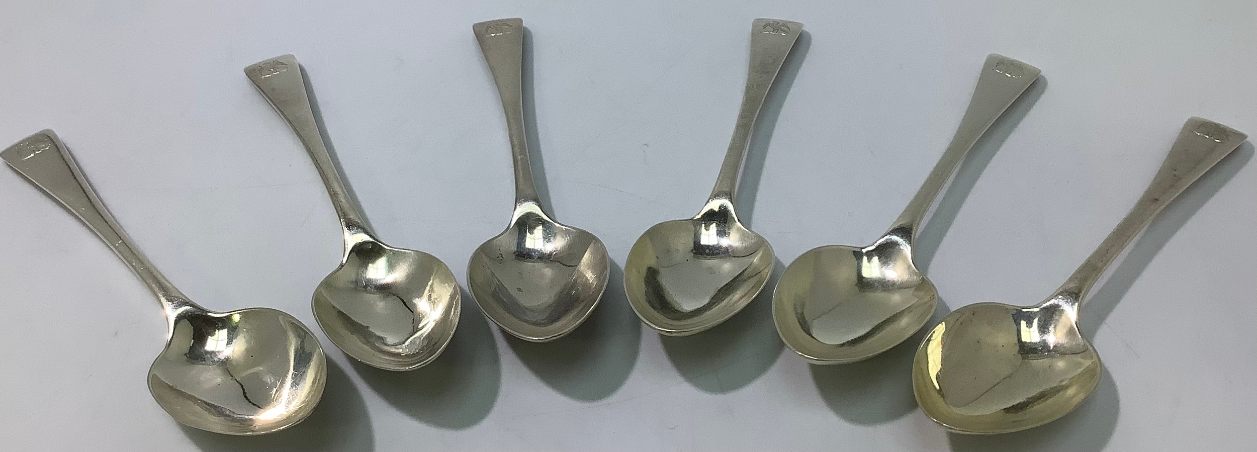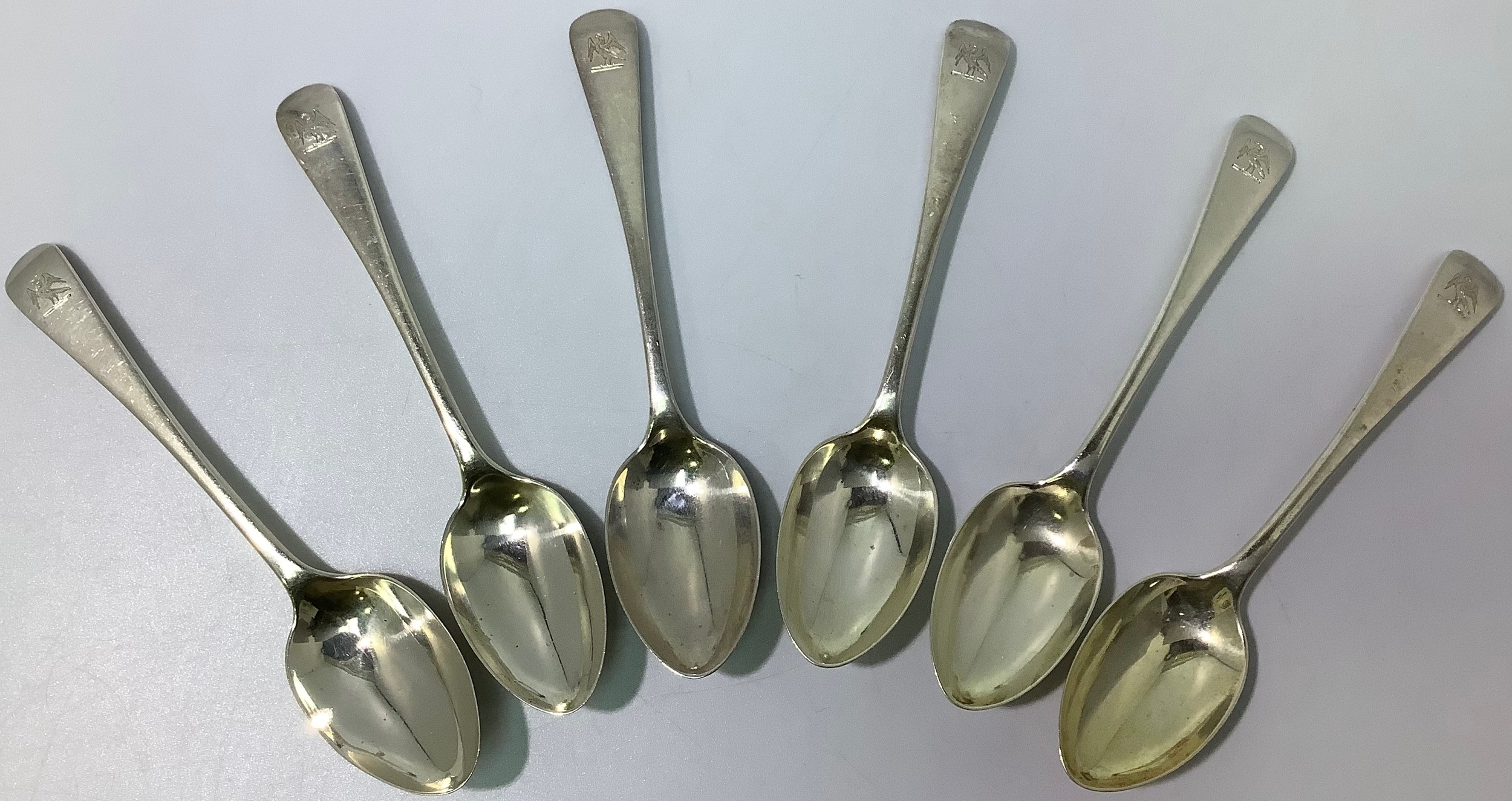 A set of six Victorian silver old English pattern teaspoons by Elkington & Co. All etched with phoenix crest, hallmarked Birmingham, 1877, gross weight approximately 4.13ozt