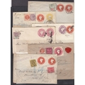 Group of 5 Postal stationery envelopes used to France, Germany and Canada, each with a multiple franking and with additional 1887 Jubilee, 1d lilac or EDVII issues as required. Also Registered cover to The Hague with 3d ‘cut out’ applied and additionally franked with ½d and 6d
