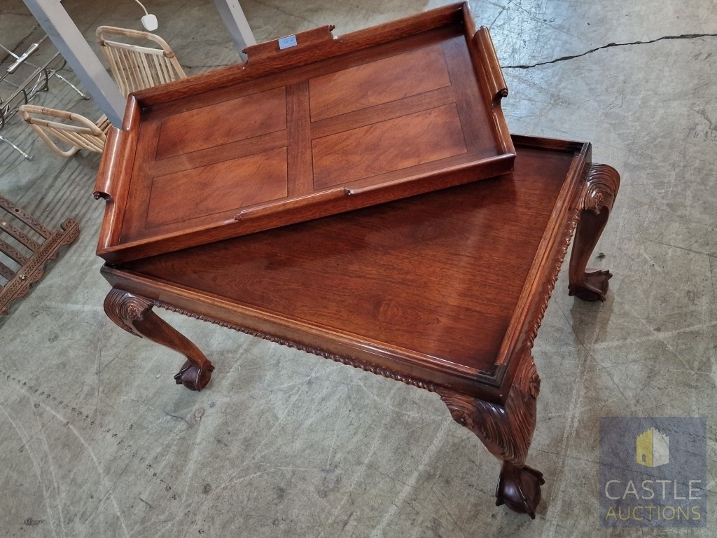 Superb Rectangular Coffee Table with Carved Cabriole Legs with Claw & Ball Feet, Featuring Removable Serving Tray Top with Scroll Handles to Four Sides, (Approx. 87 x 57 x 53cm)