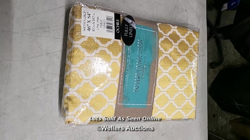 RRP: 24.99 - ROSALIND WHEELER DAREECE COTSWOLD PENCIL PLEAT LINED CURTAINS / COLOUR: OCHRE, PANEL SIZE: WIDTH 116 X DROP 137 CM / SEE IMAGES FOR CONDITION / STOCK IMAGES USED FOR ILLUSTRATION / E18