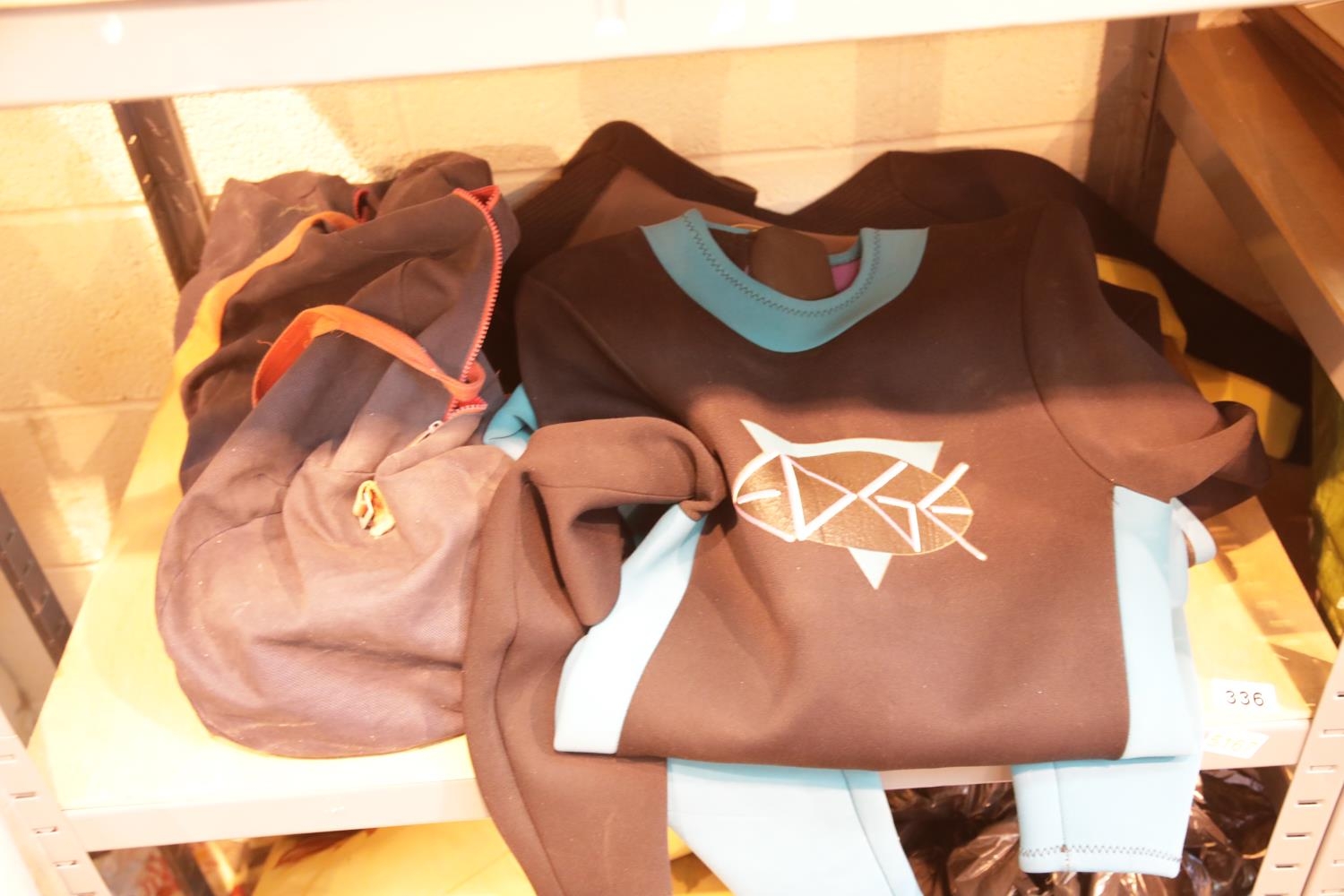 Two Neoprene wetsuits size M and a pair of flippers. This lot is not available for in-house P&P.