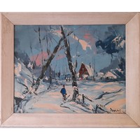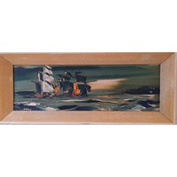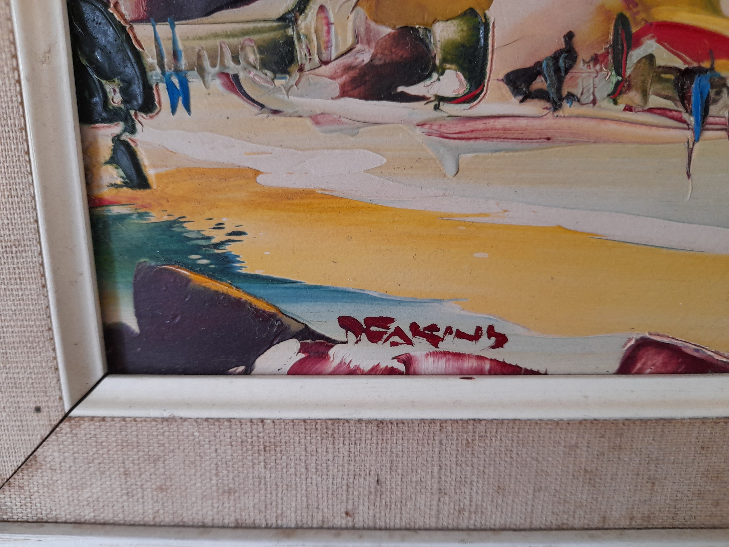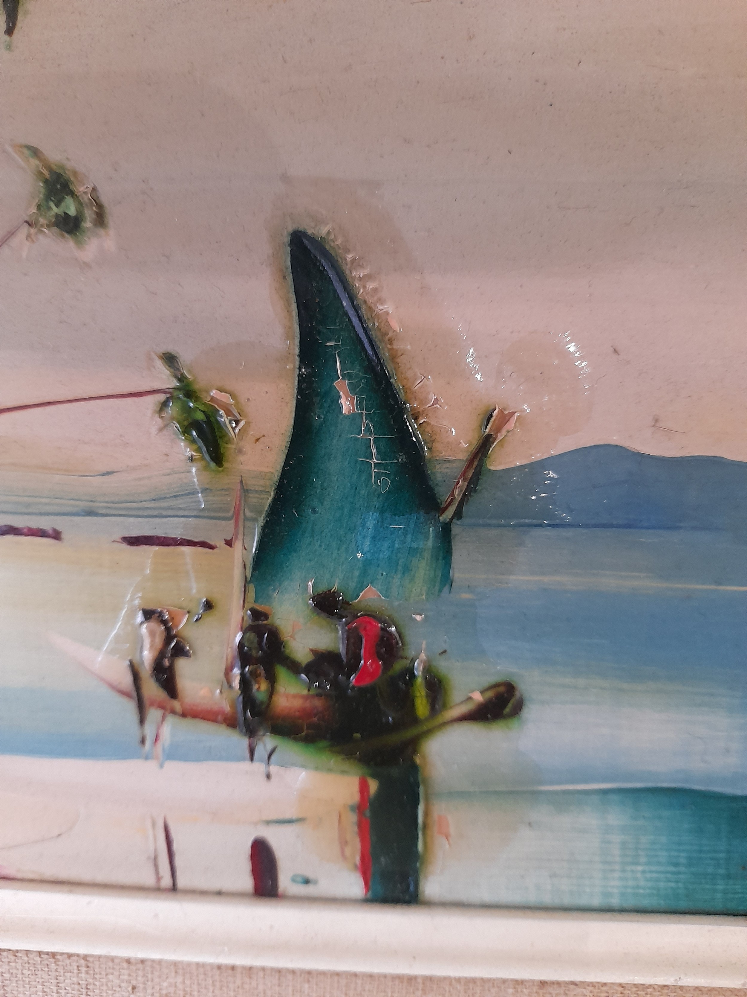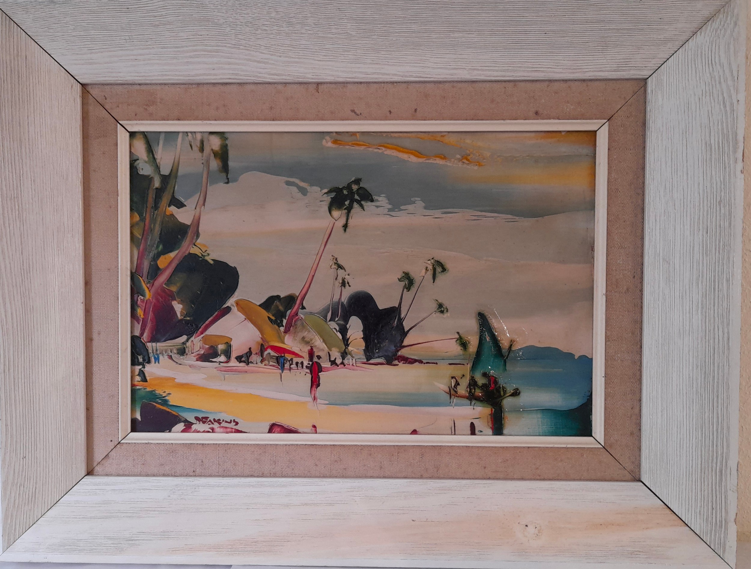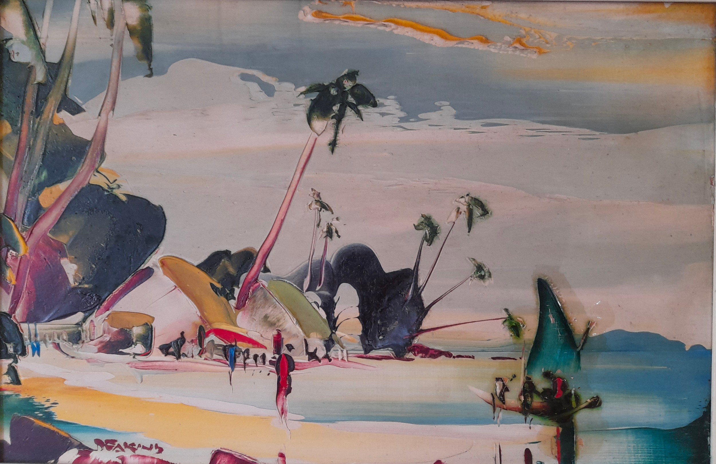 George R Deakins (1911-1982) Oil on Board of a Tropical coastal scene. signed lower left. 43cm x 33cm inc frame