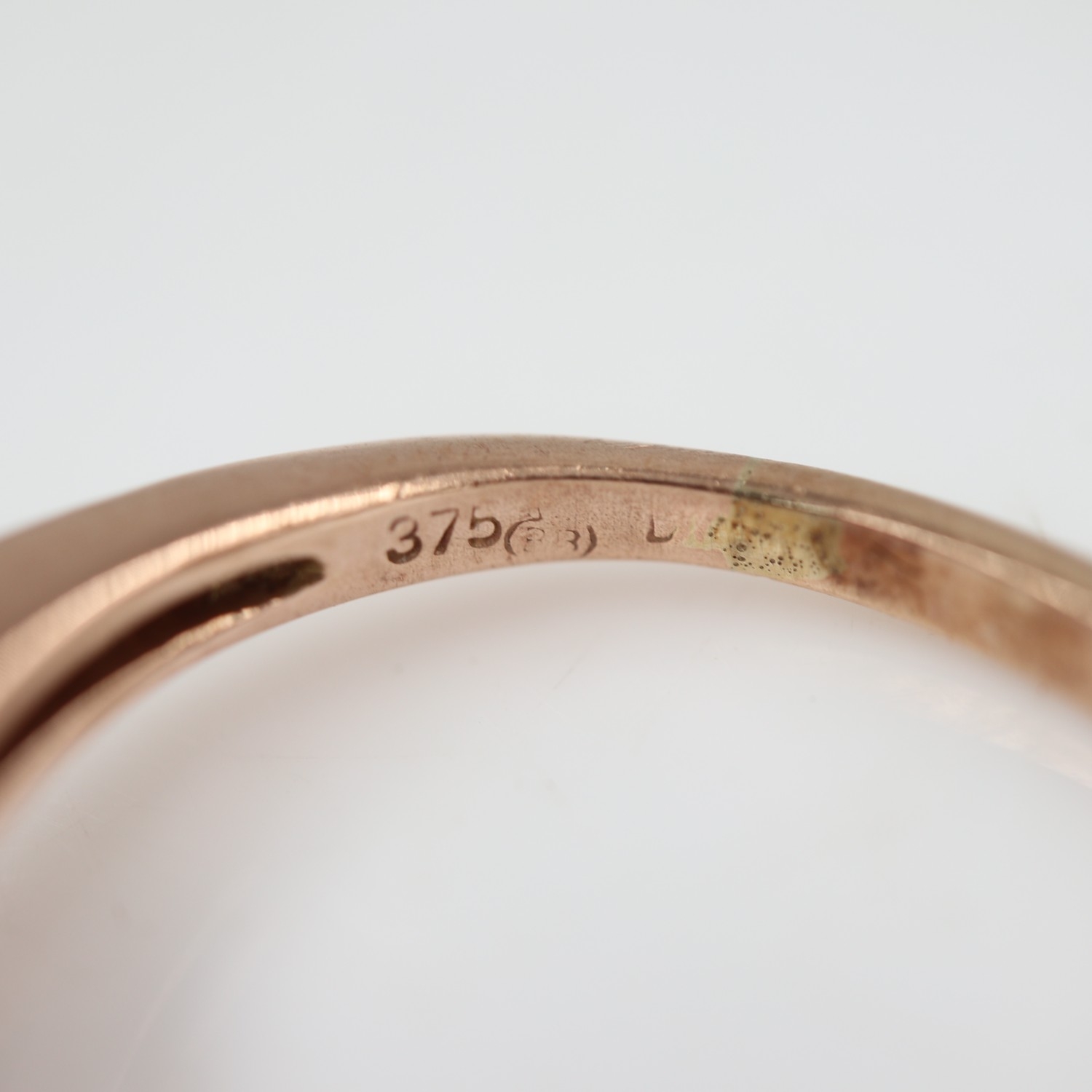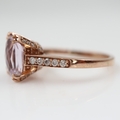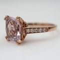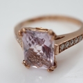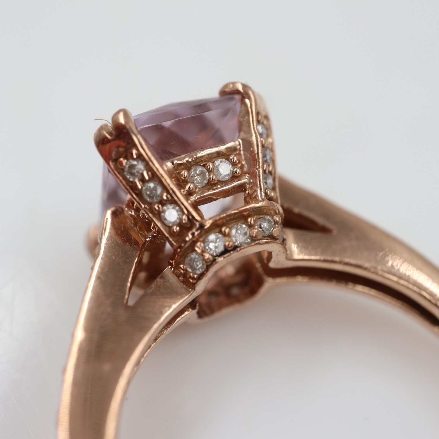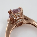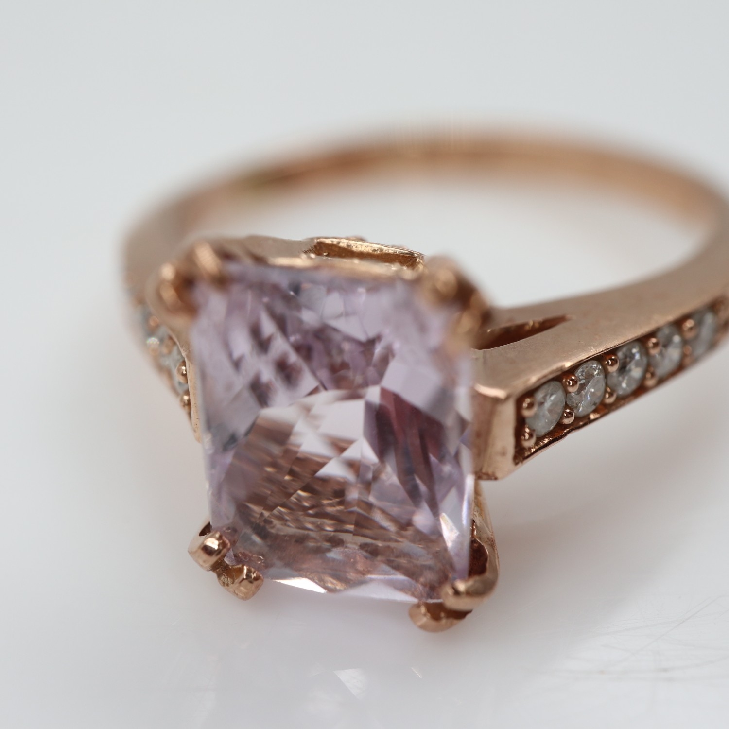 9ct rose gold ring set with pink kunzite and diamond, size P/Q, 3.9g. UK P&P Group 0 (£7+VAT for the first lot and £1+VAT for subsequent lots)