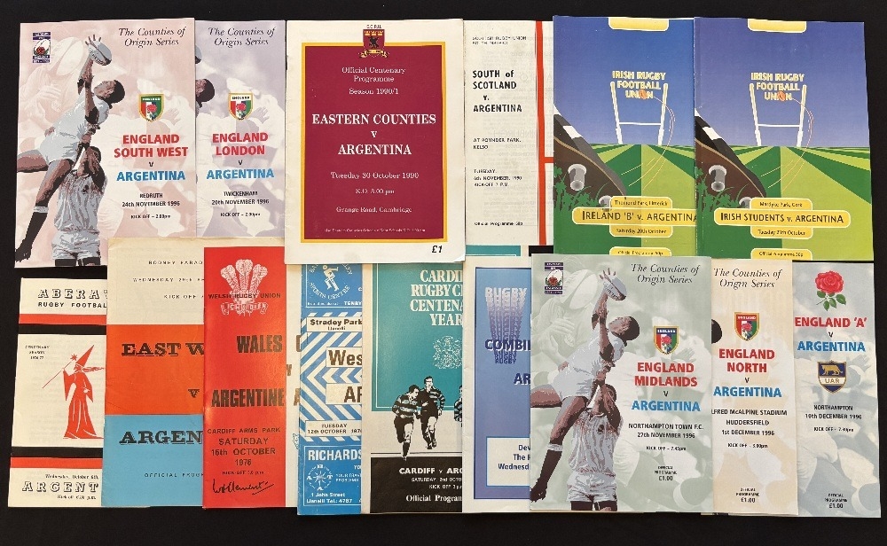 1976-1996 Argentina in the UK Rugby Programmes (14): 1976 v E Wales, W Wales, Cardiff and Wales; 1990 v E Counties, S of Scotland, Ireland B and Irish Students; 1996 v England SW, London, Midlands, North, England A and Combined Services. VG