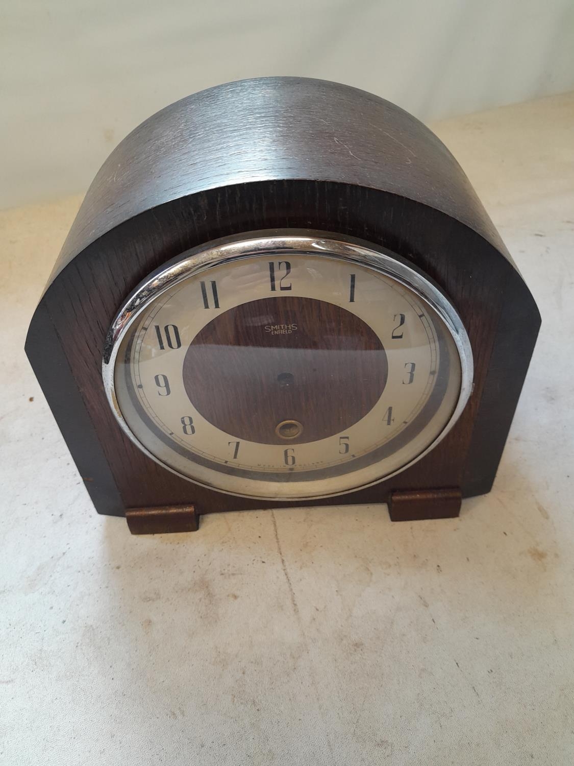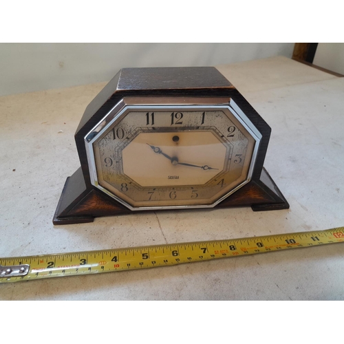 Vintage Smith mantle clock in oak case as found
