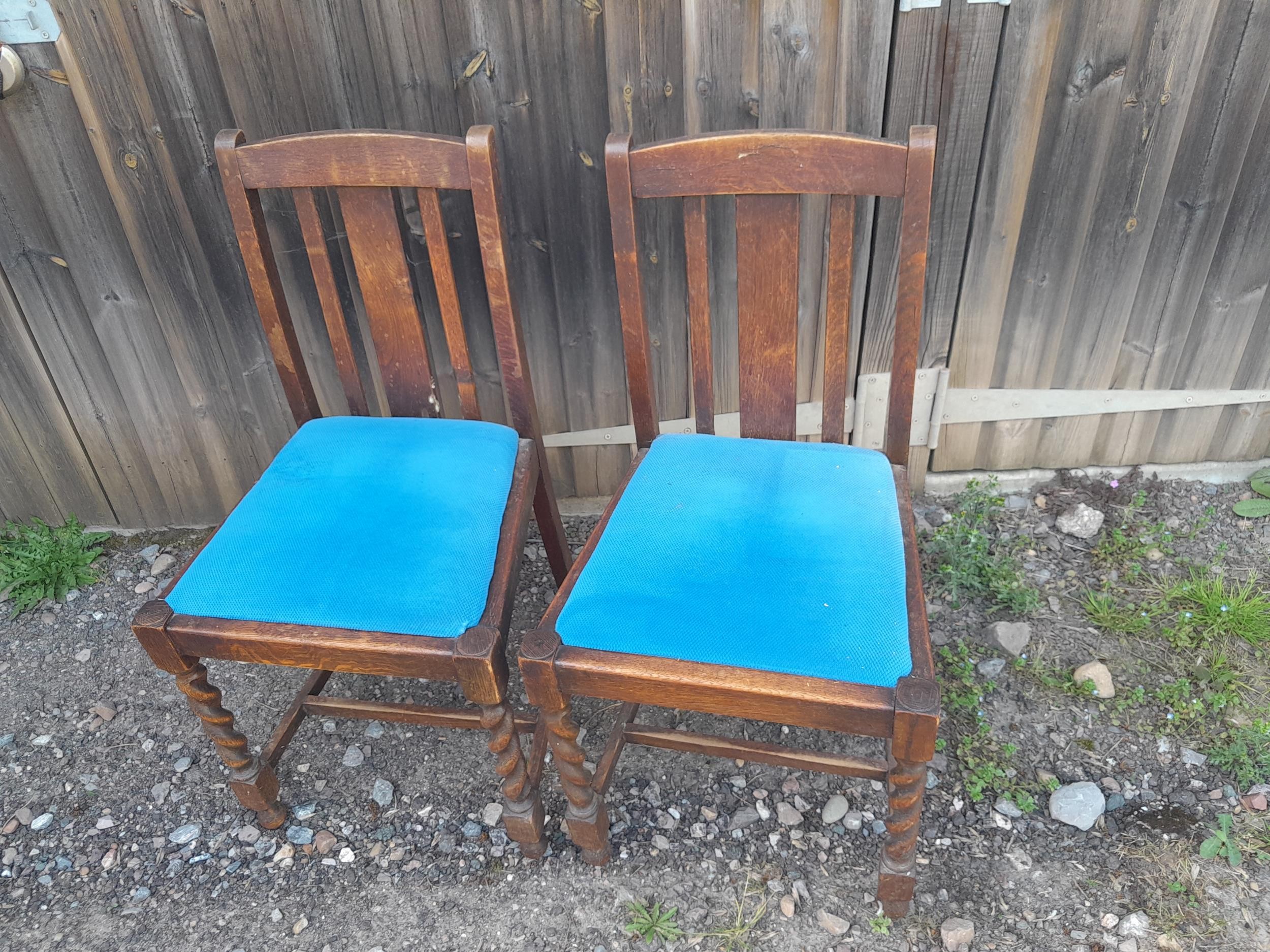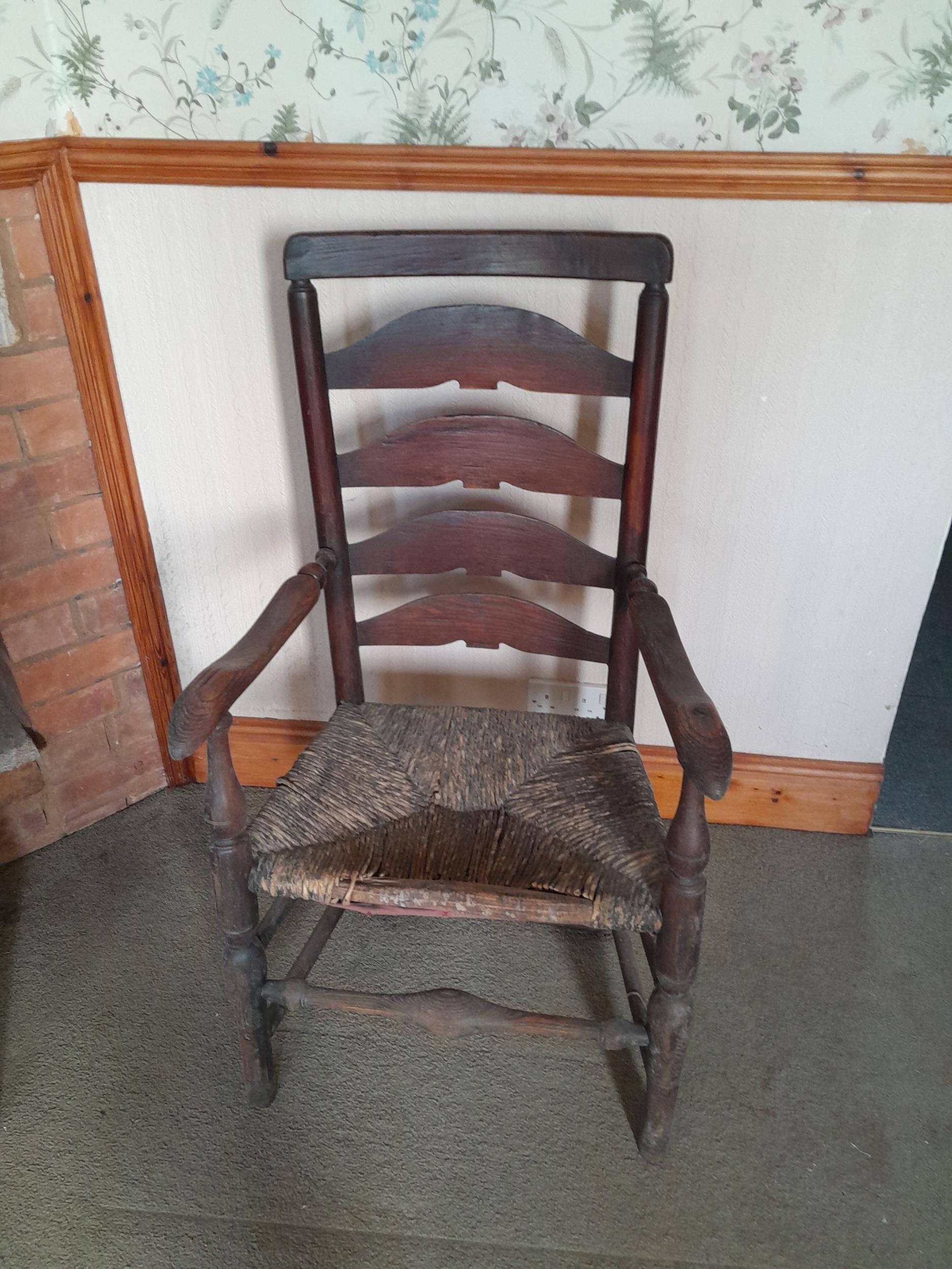 19th century ladderback carver chair & 2 oak drop seat barley twist chairs