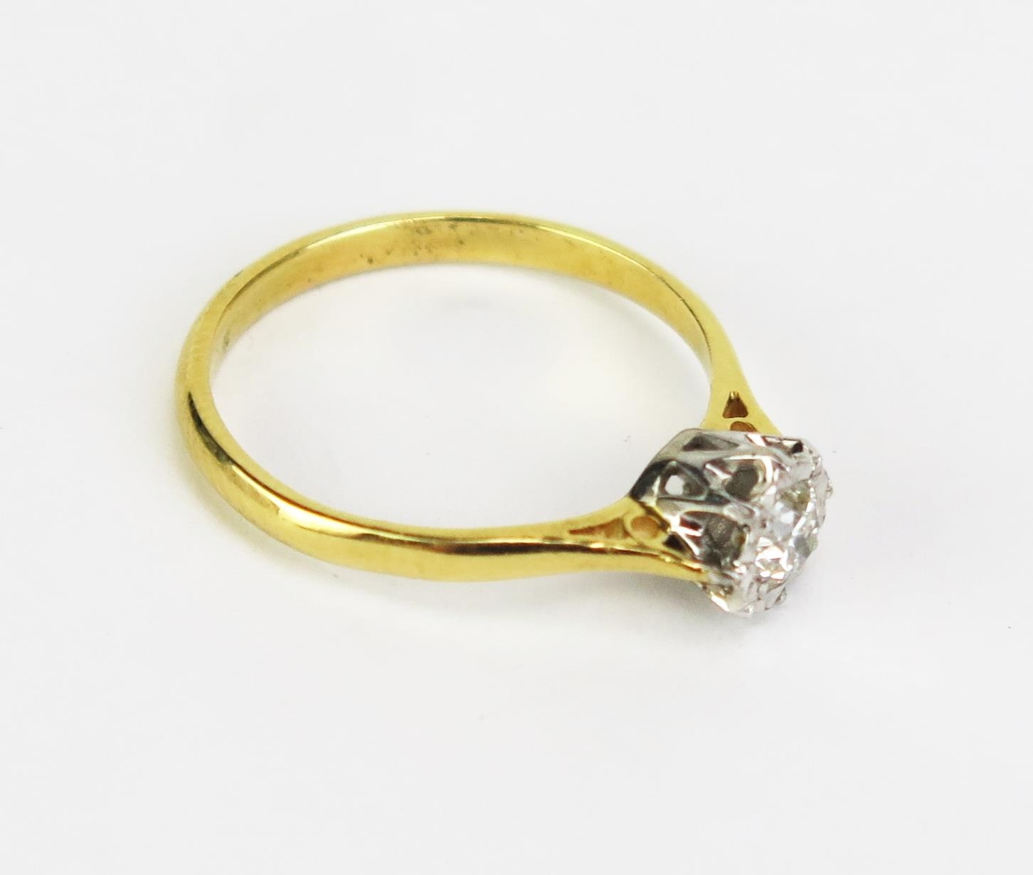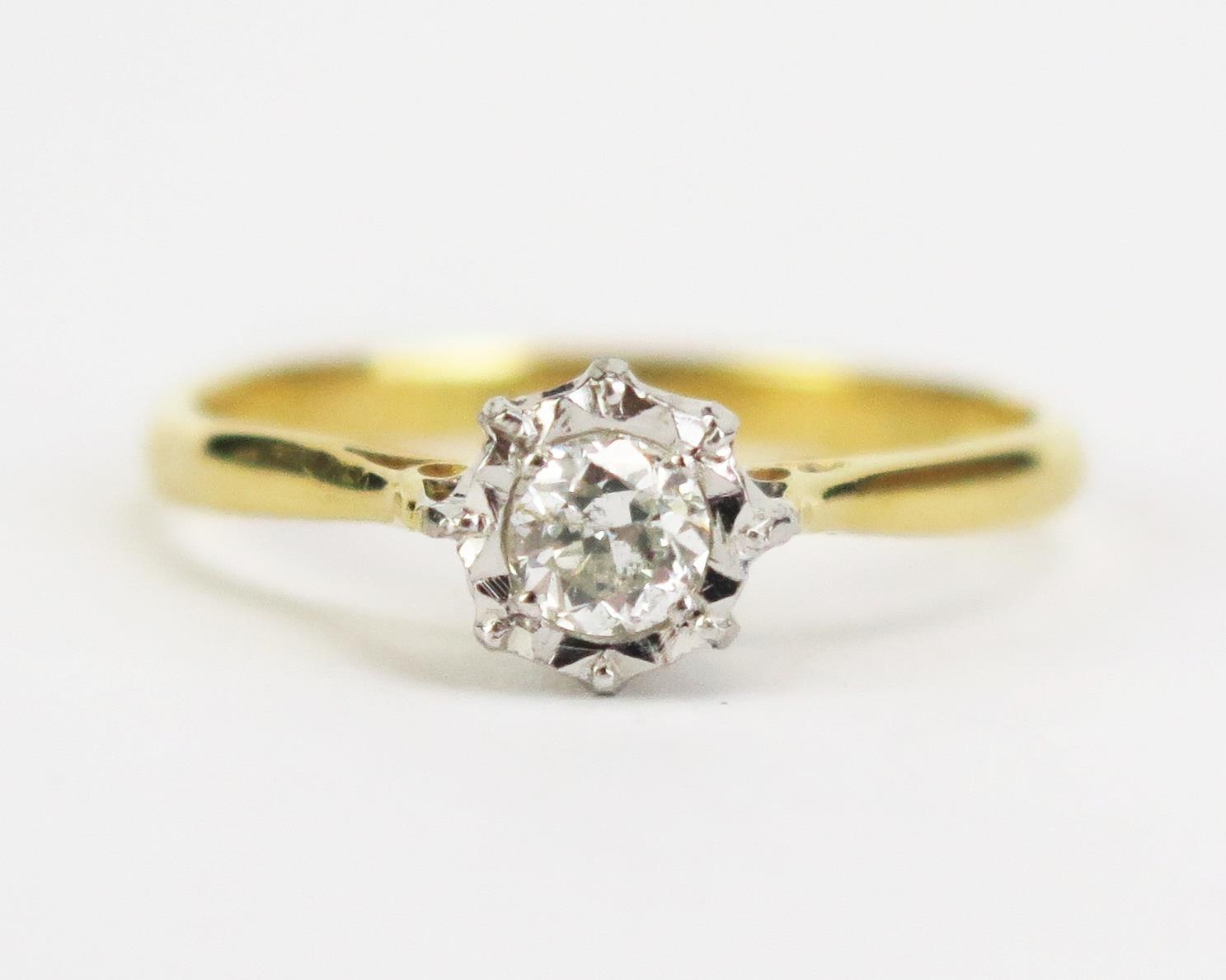 An 18ct Gold and Diamond Solitaire Ring, c. 4mm illusion set stone, size N, 2.29g