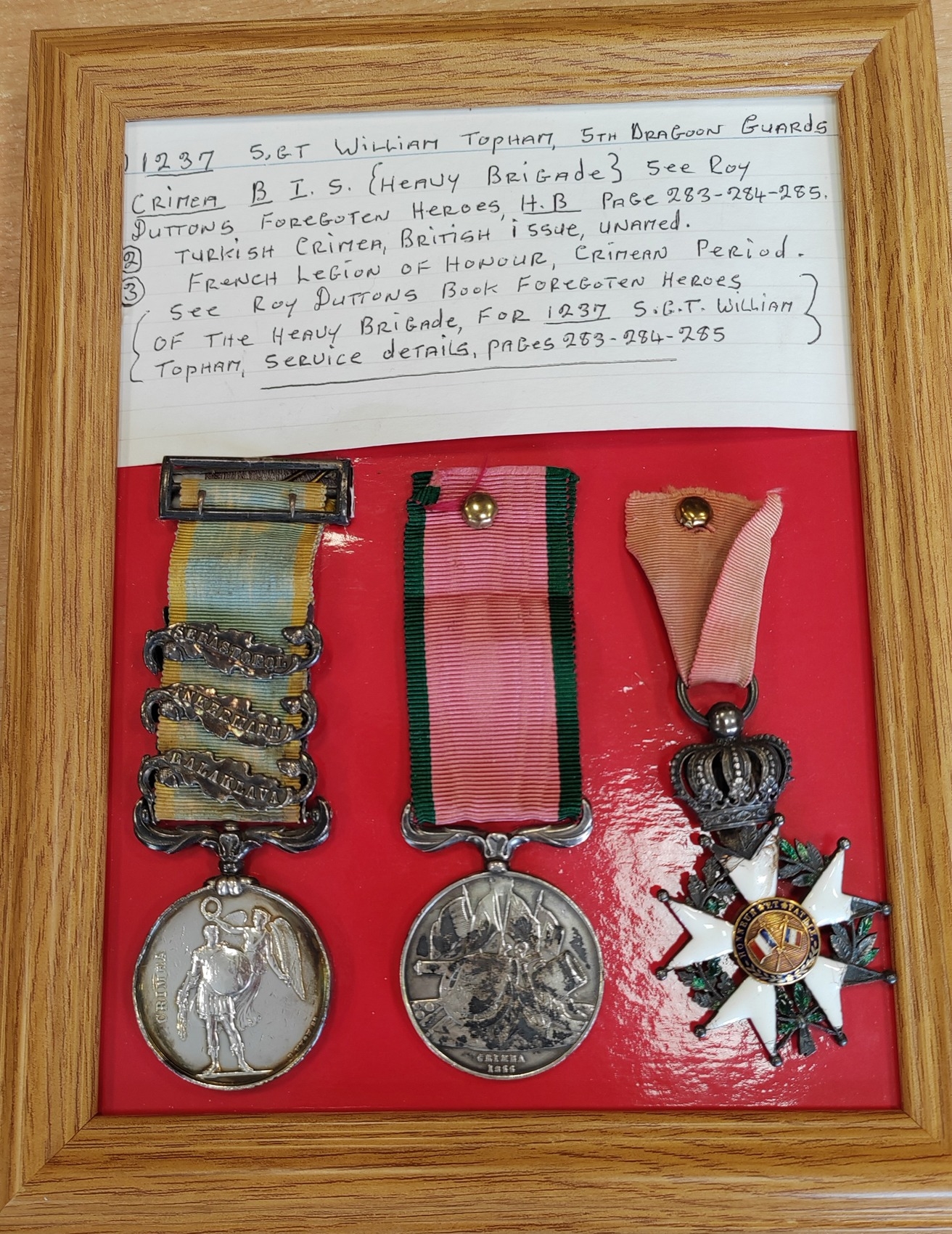 1. 3 clasp Balakava, Inkermann, Sebastopol to Set t Wm Topham 5th D., 3 clasp Alma, Inkermann, Sebastopol to Jas Carty 88th Regt.
