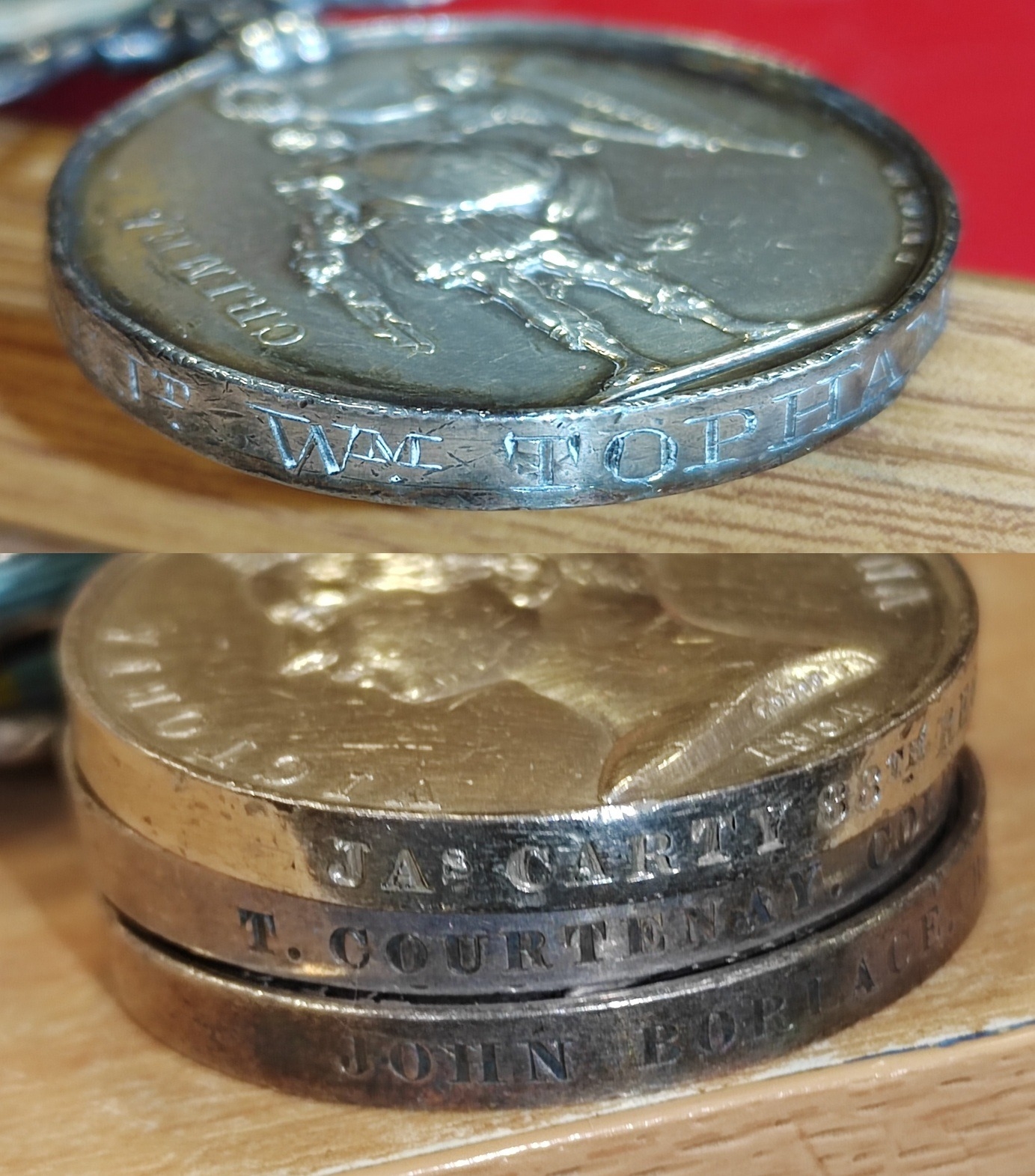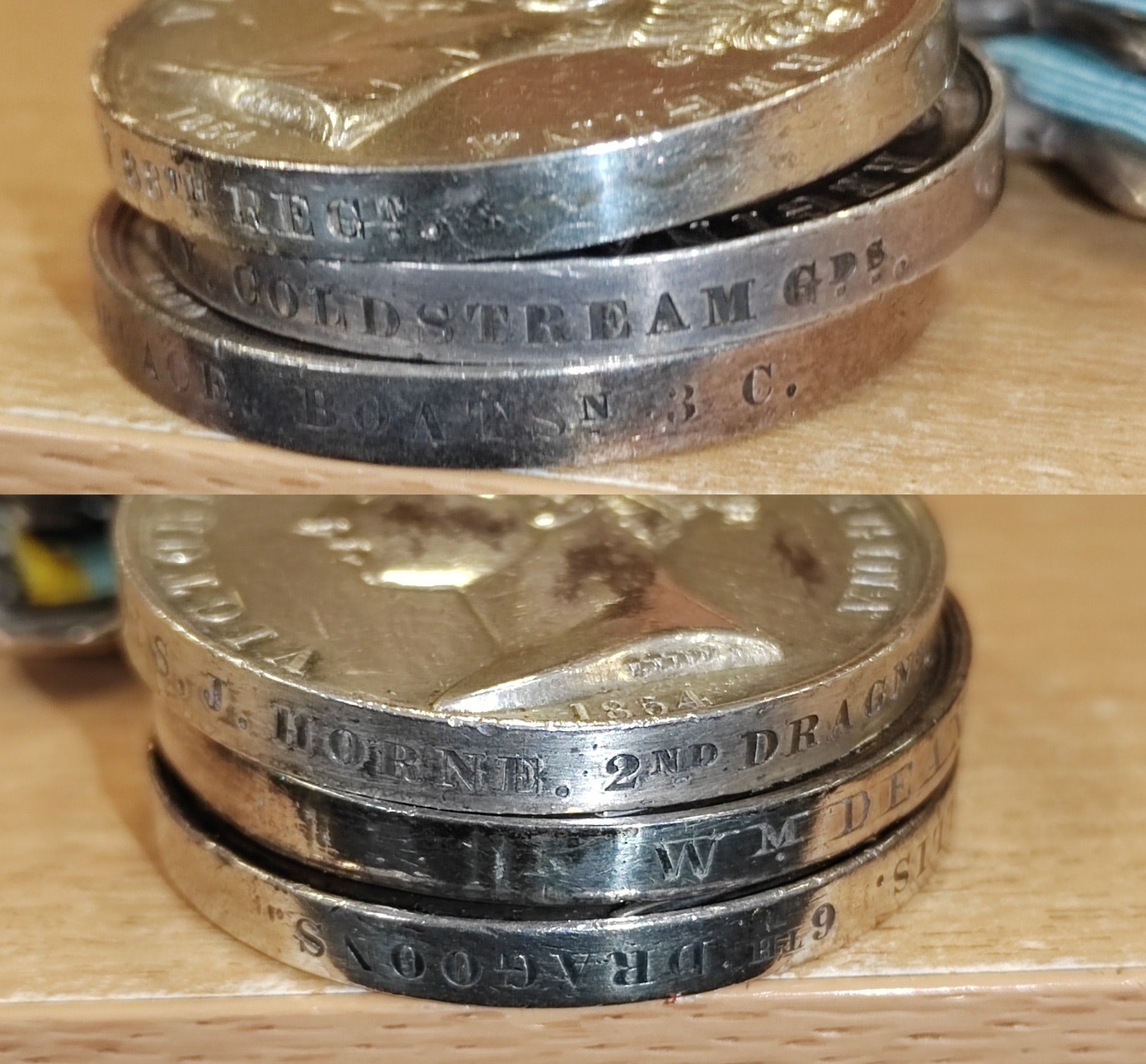 2. 2 clasp Inkermann, Sebastolpol to S.J. Horne. 2nd Dragns., same to John Borlace . Boatsn 3 C., Alma, Sebastopol to T. Courtenay. Coldstream Gds.,