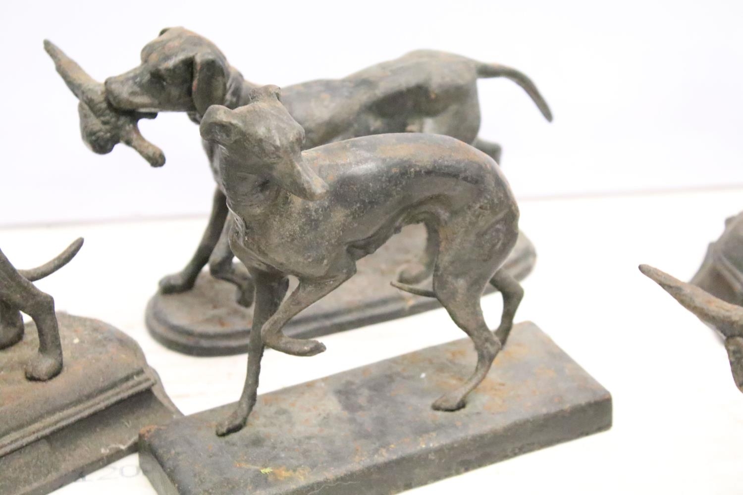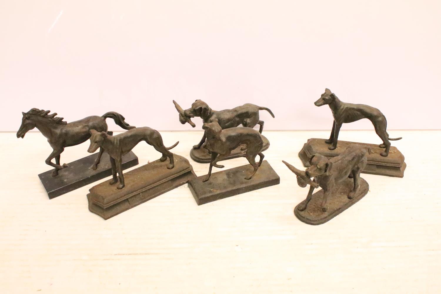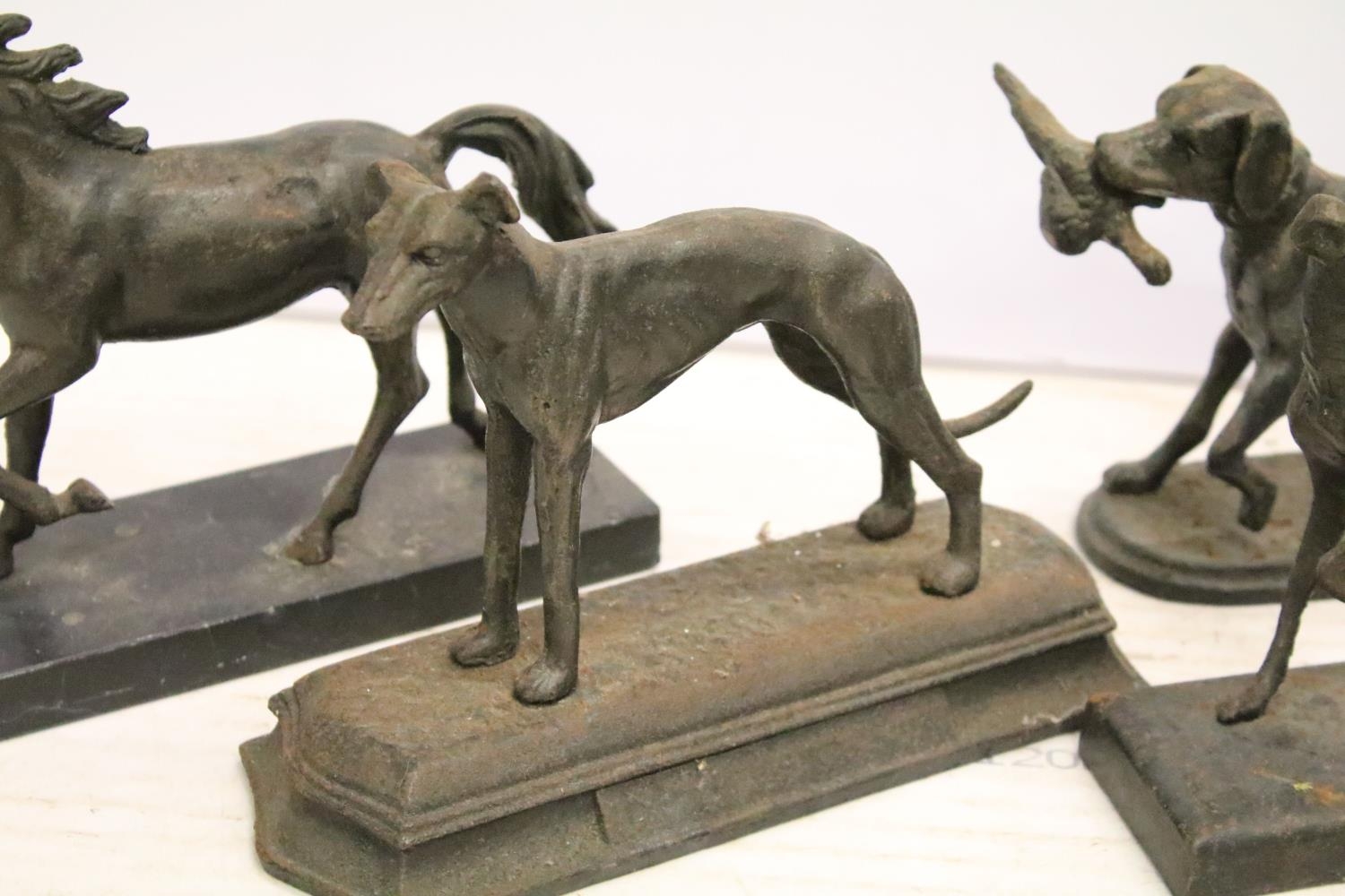 Group of five cast iron dog ornaments and a horse example, tallest approx 18cm