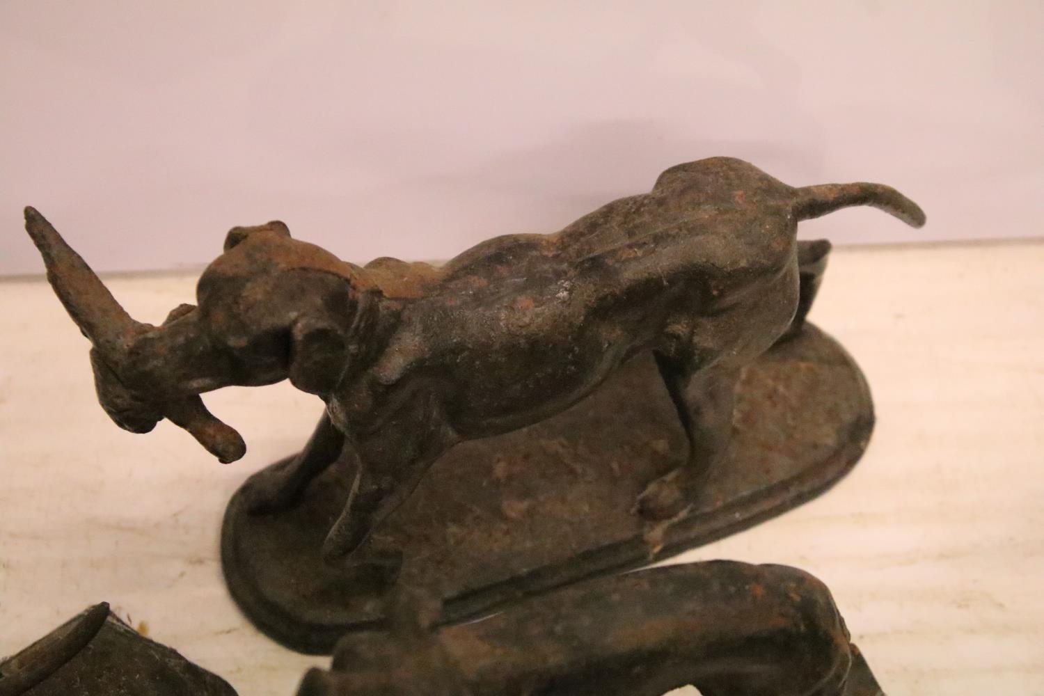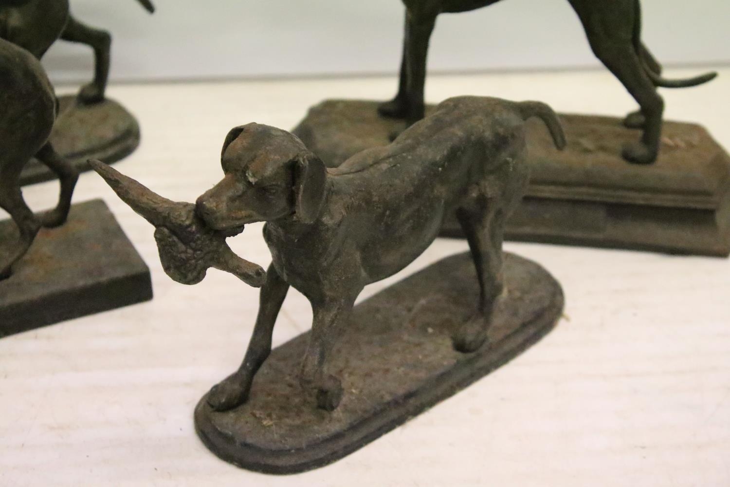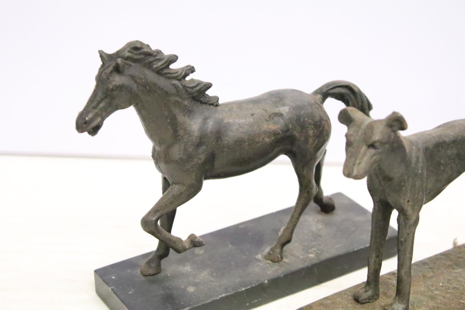 Group of five cast iron dog ornaments and a horse example, tallest approx 18cm