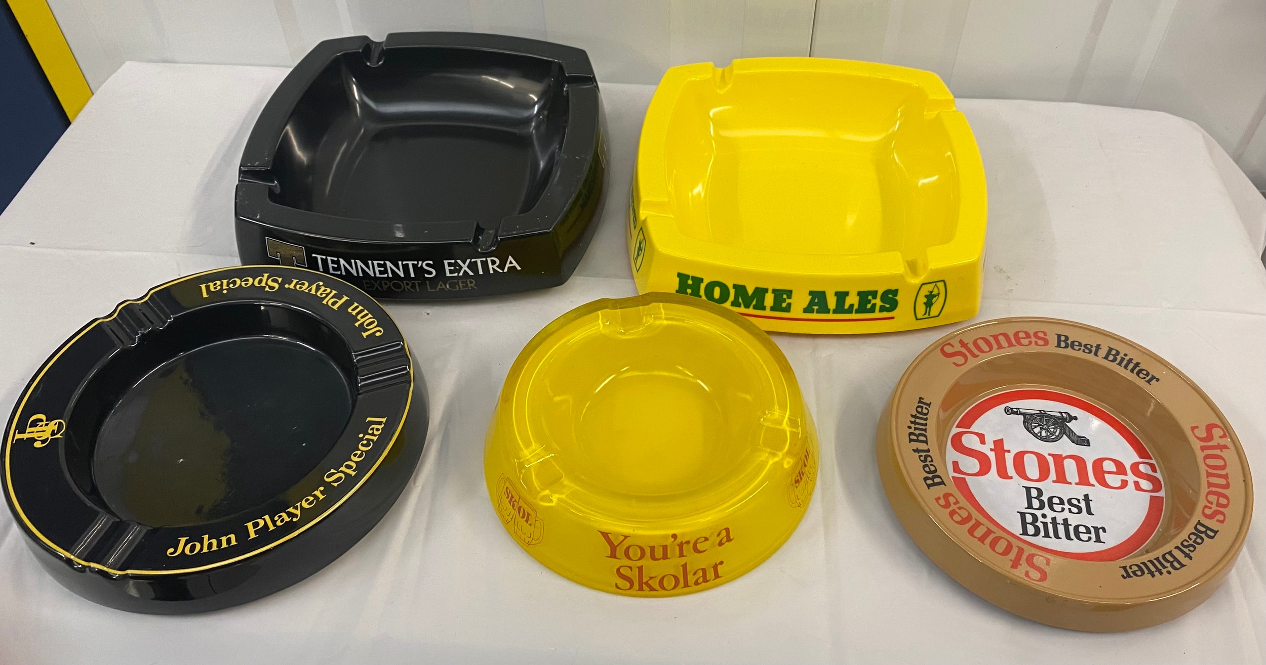 Five Vintage Ash Trays to include Stones, Tennents, Skolar (5)