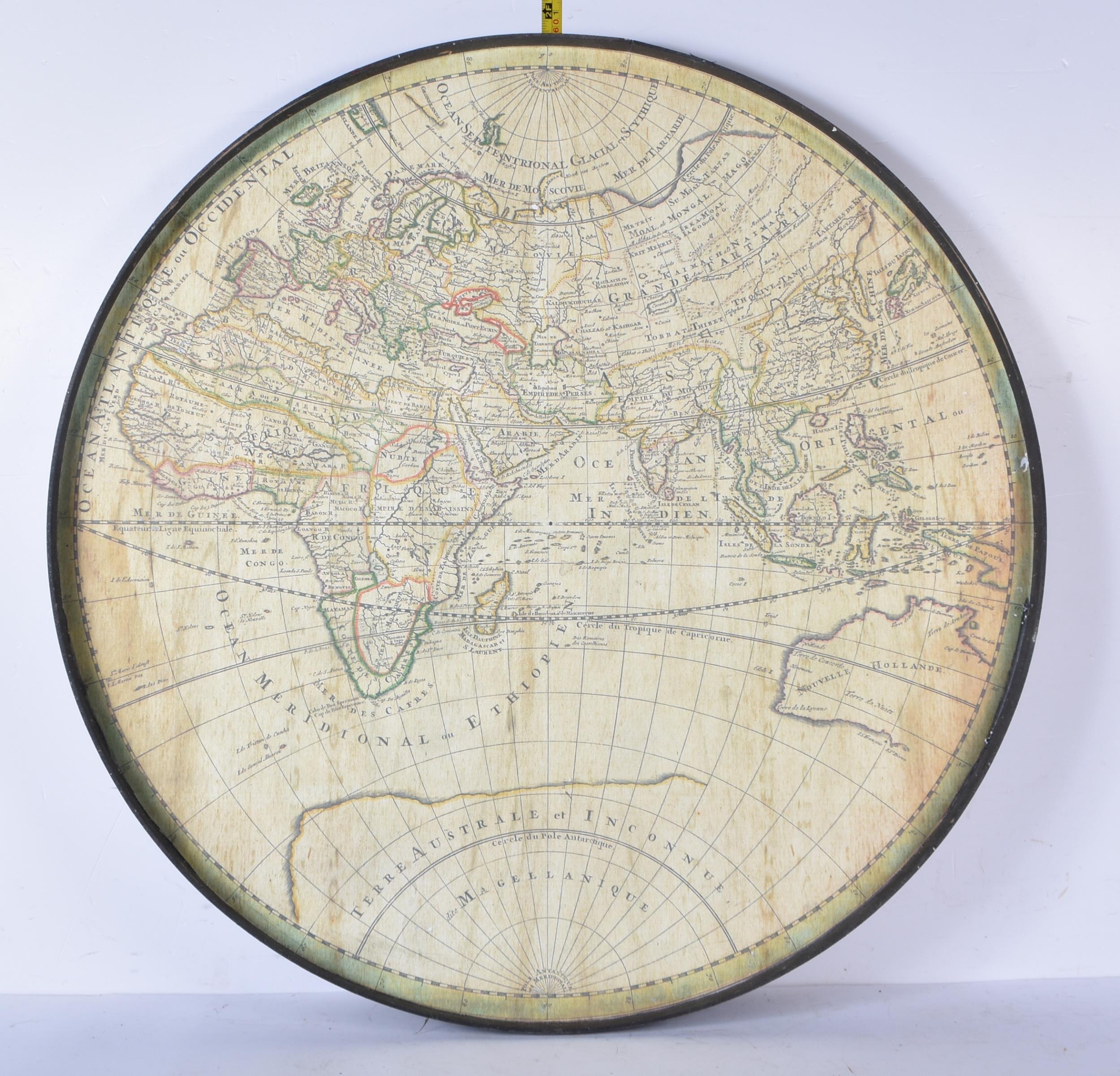 A world map table top .59cm diameter.