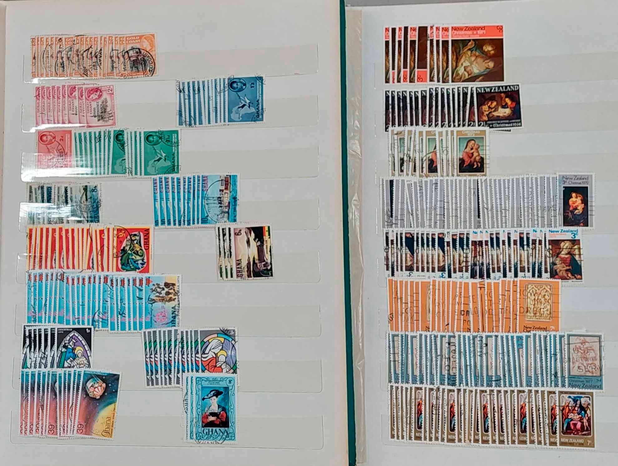 EARLY TO MODERN DUPLICATED FOREIGN COLLECTIONS: Two boxes containing nine stockbooks, some well worn. Inc. early to modern India issues; mainly modern Sweden; mainly modern New Zealand; some (mainly modern) Commonwealth issues; lever arch files of USA, Commonwealth with Sudan, and Hungary (1870 to modern); etc. (Many 1000s) Cross Reference: INDIA, SWEDEN, NEW ZEALAND, UNITED STATES OF AMERICA