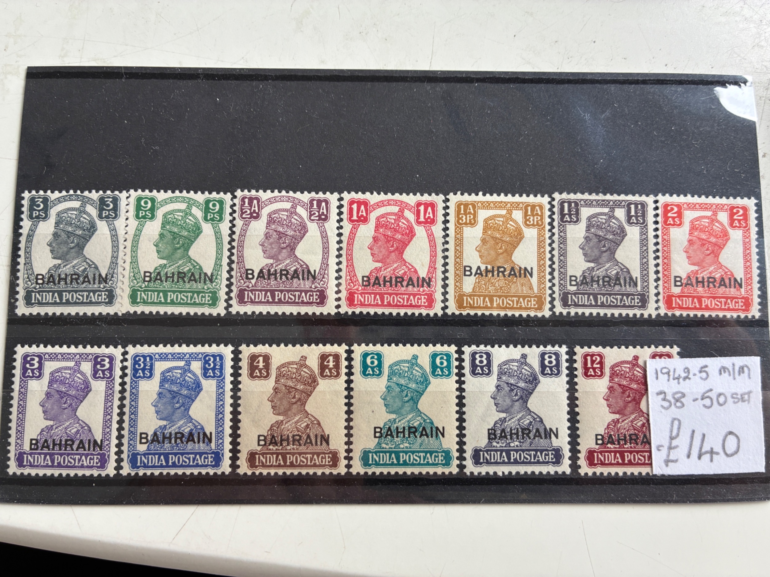 Bahrain 1942/5 GVI complete set (13), m/m. (SG 38/50). Cat £140