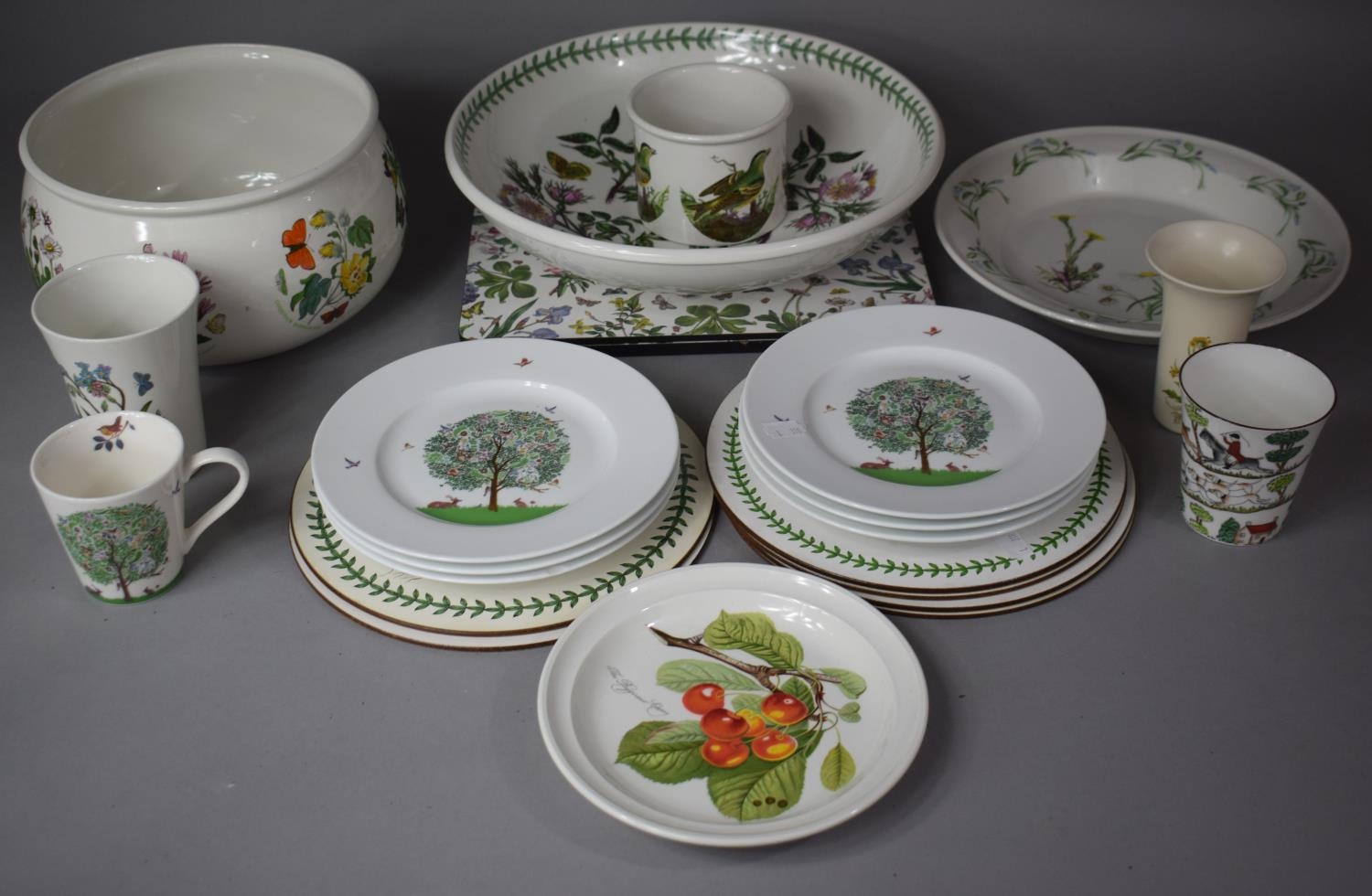 A Collection of Various Portmeirion China to Include Botanic Garden, Birds of Britain, Enchanted Tree etc Together with a Poole Floral Decorated Sleeve Vase, Royal Crown Derby Hunting Tankard Etc