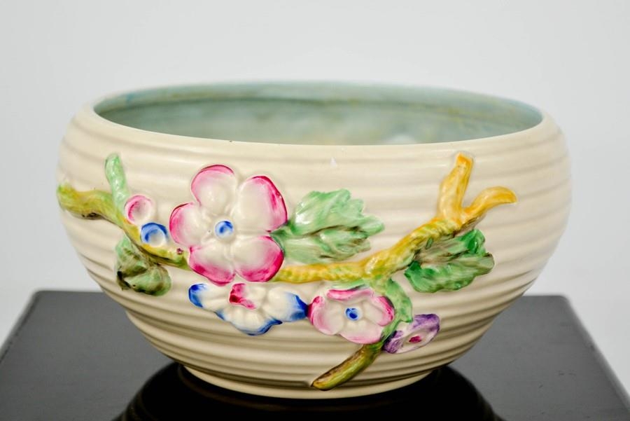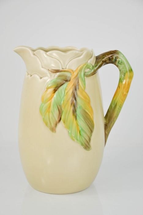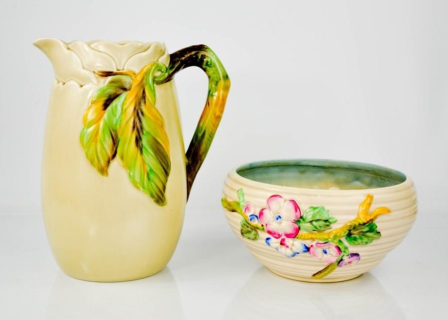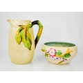 A Clarice Cliff pottery bowl, together with a Clarice Cliff Autumn Leaves pattern jug 33cm high.