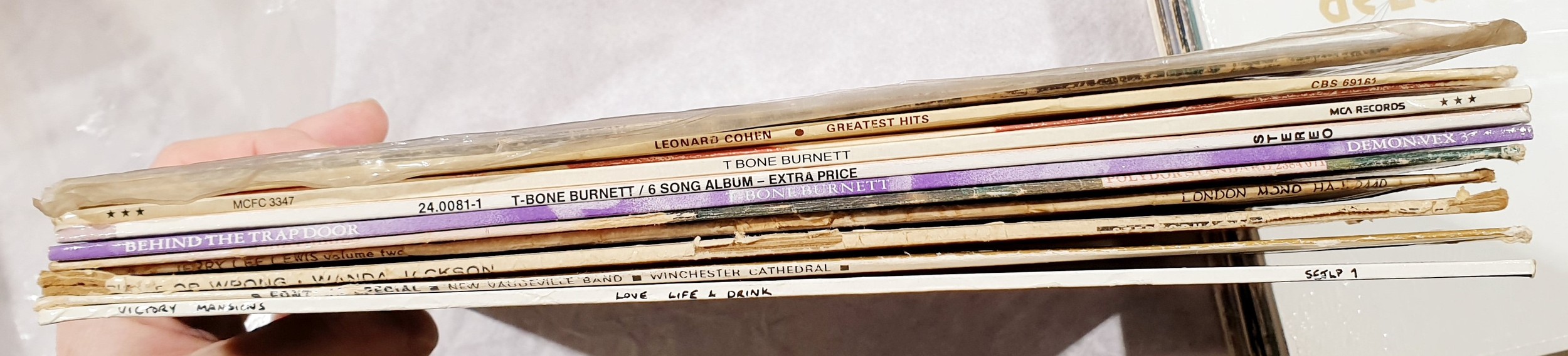 Ten vinyl LPs including John Kale "Slow Dazzle", Leonard Cohen and T-Bone Burnett. UK shipping £14.