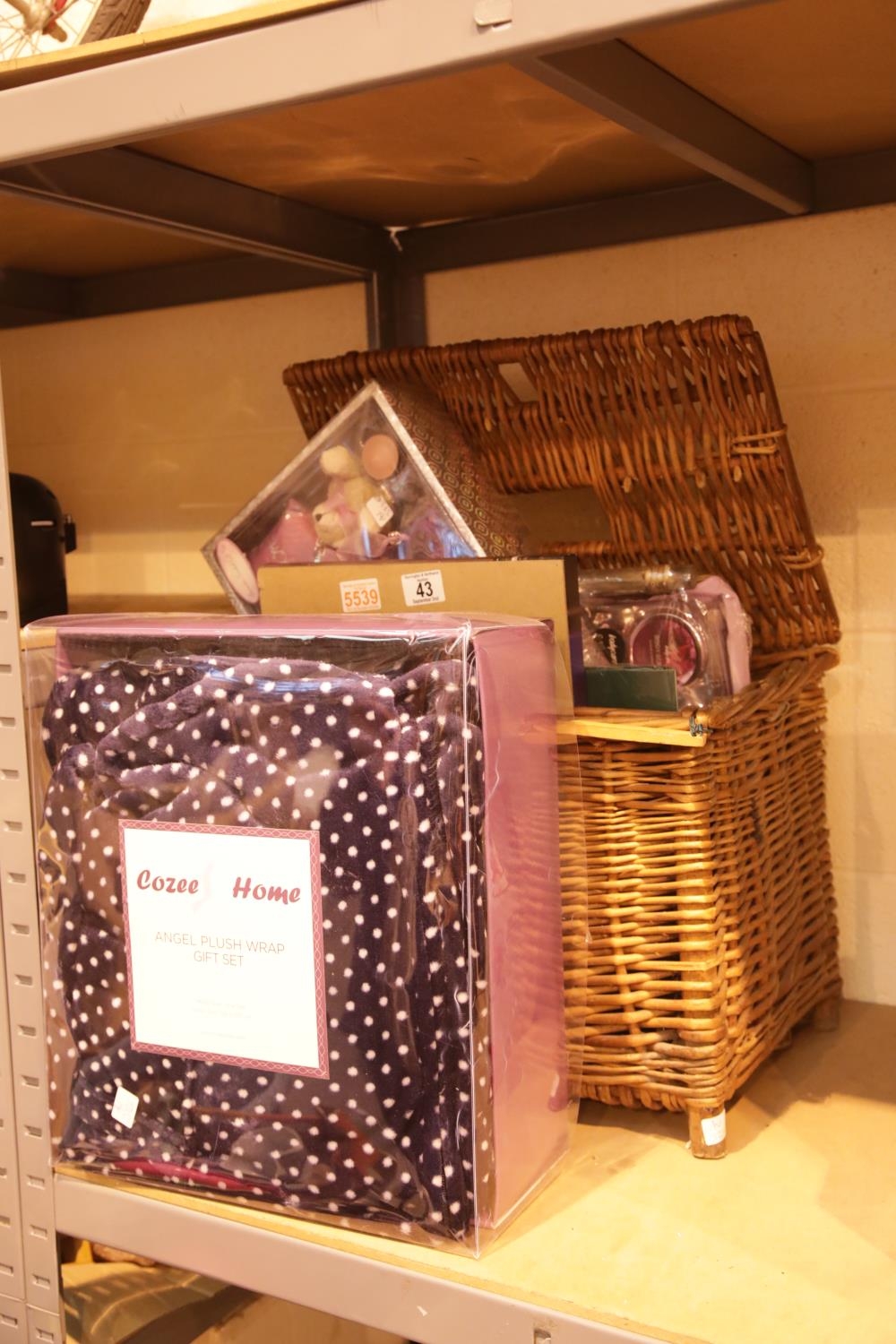 Box of mixed items including gift sets, throws etc. Not available for in-house P&P.