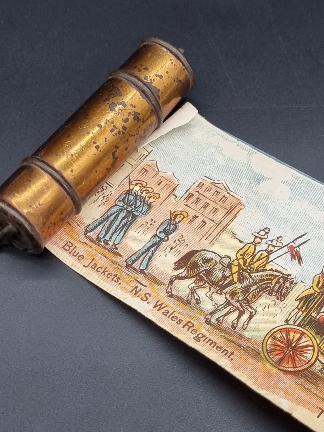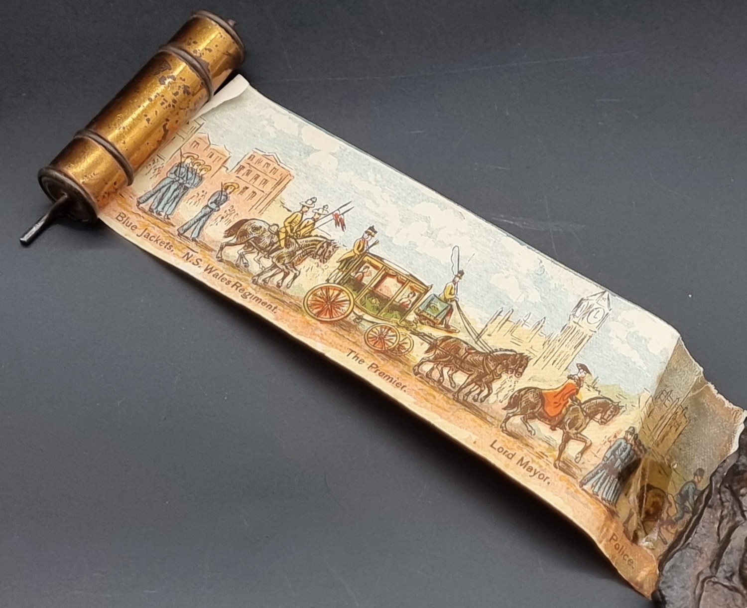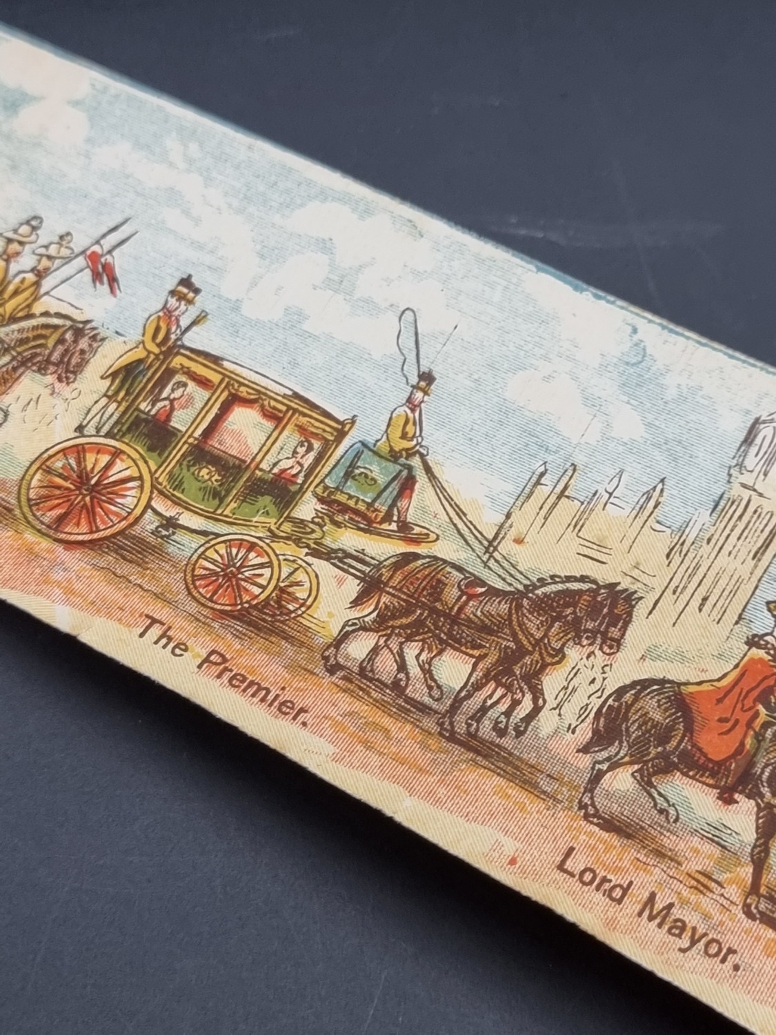 QUEEN VICTORIA, DIAMOND JUBILEE PANORAMA: a chromolithographic panorama of Her Majesty Queen Victoria's Diamond Jubilee procession, contained in lacquered metal case with turning handle, 6cm long, the panorama extending to 74cm, some tears and old tape repairs, published by J W Lawrence, London EC. (1)