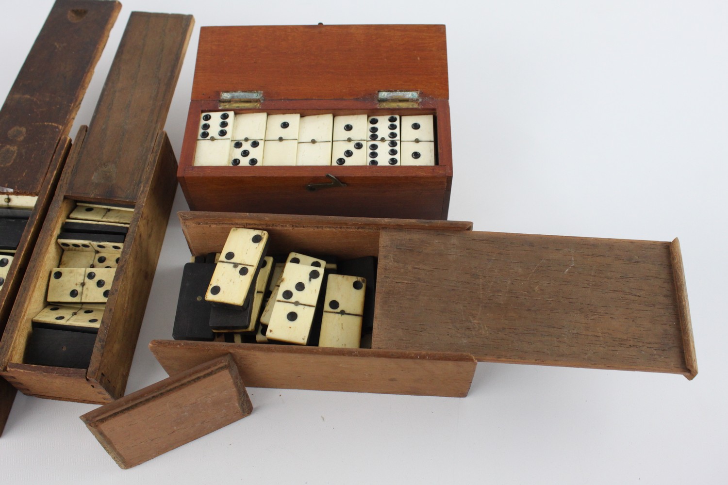4 x Antique / Vintage Bone Dominoes Inc. Double 6, Ebony, Wooden Boxed, Etc