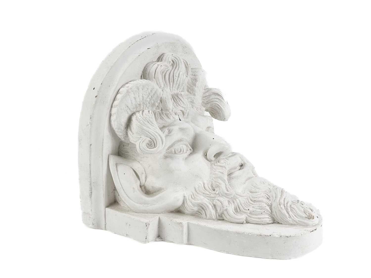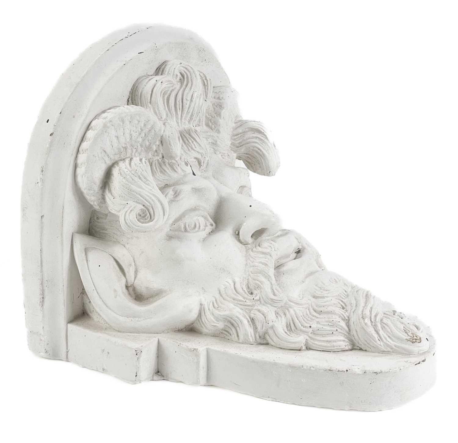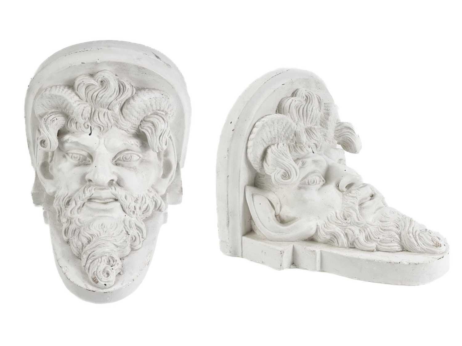 Peter HONE (b.1941) The property of Peter Hone. A pair of plaster wall brackets, cast in relief with satyrs' masks. Height 22cm, width 20cm, depth 19.5cm. Stepping over the threshold into Peter Hone’s London home is an unforgettable experience; a sensory over load of the most delightful sort; inside is a curated wonderland interior as enchanting and extraordinary as the man himself. Peter has lived in his Notting Hill flat since the 1960s. Its fabulous interior has graced the cover of World of Interiors more than once and its creator is adored by the cognoscenti of the interior design world. Peter is a man of many stories, and one of last year’s exciting chapters was the auction we held for him, selling the remarkable contents of his London abode: all the ancient architectural fragments, classical busts, urns, marbles and curios, and perhaps most wondrous of all, Peter’s beautiful plaster reliefs, which adorn almost every available wall. Peter’s interest in plasterwork developed during his 15 years at Clifton Nurseries in Little Venice, where he managed an architectural antiques shop for Lord Jacob Rothschild. This is where Hone ‘honed in’ on plaster, as he likes to joke. These further items from Peter are excess lots to his previous sale. We will also have further items in our next Oak & Country sale on June 13th 2024.