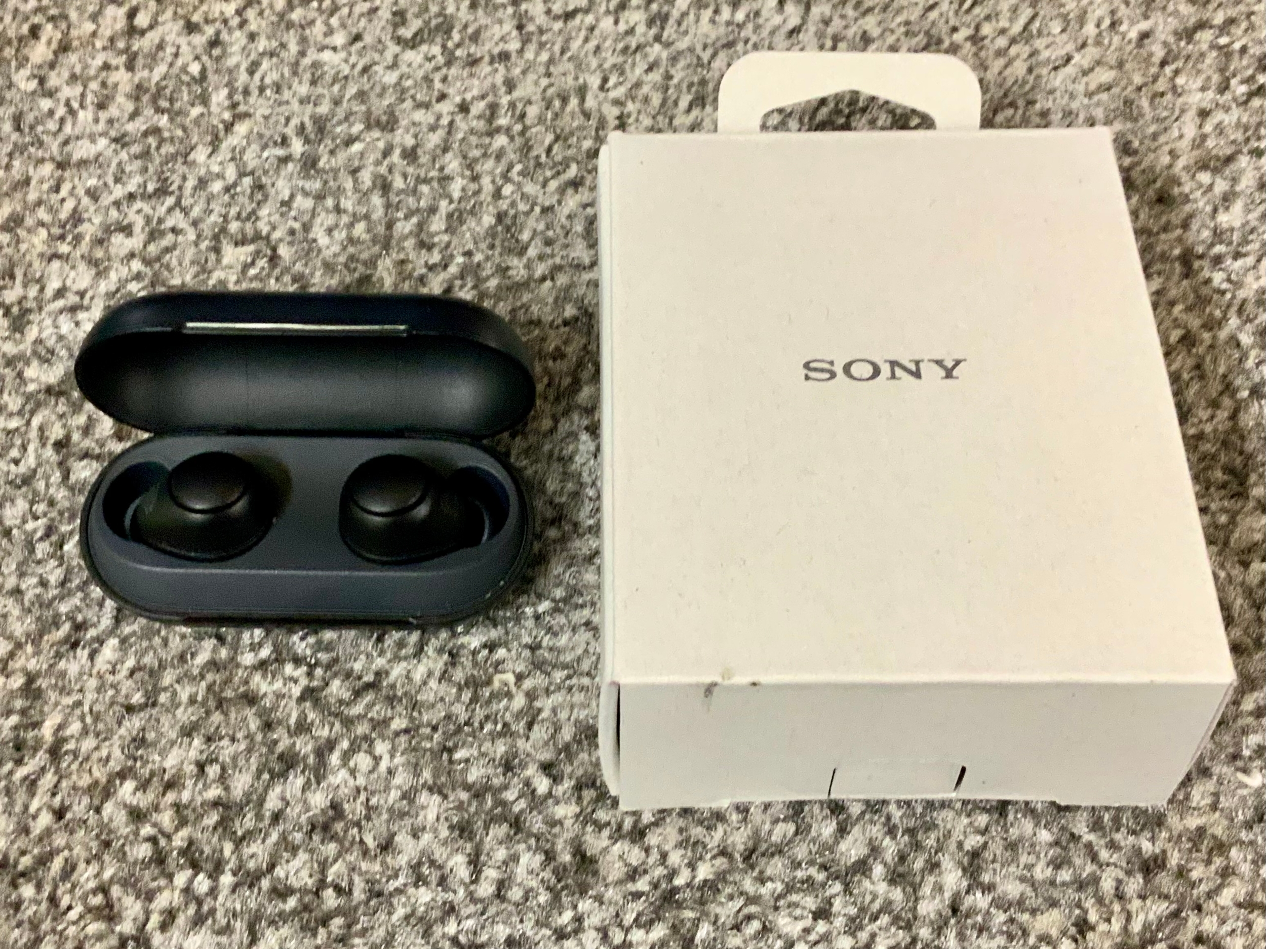 BOXED SONY WF-C700N IN BLACK WITH CHARGING CABLE AND EXTRA BUDS