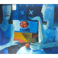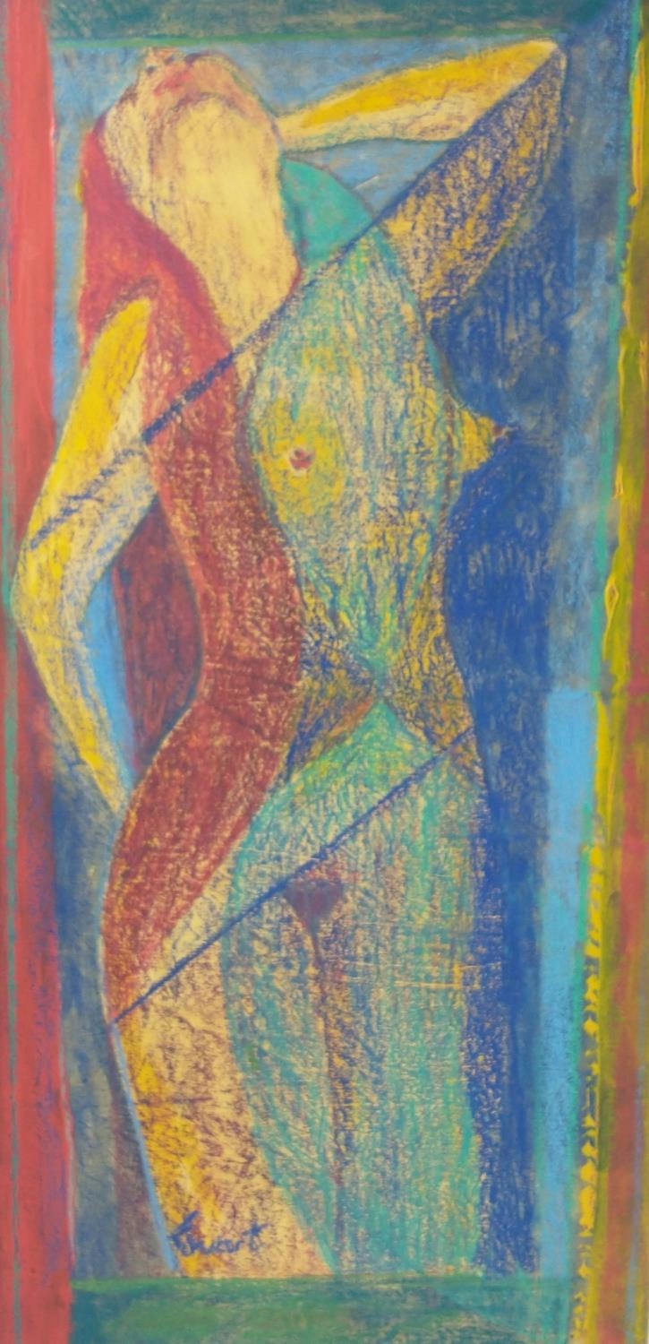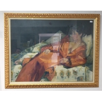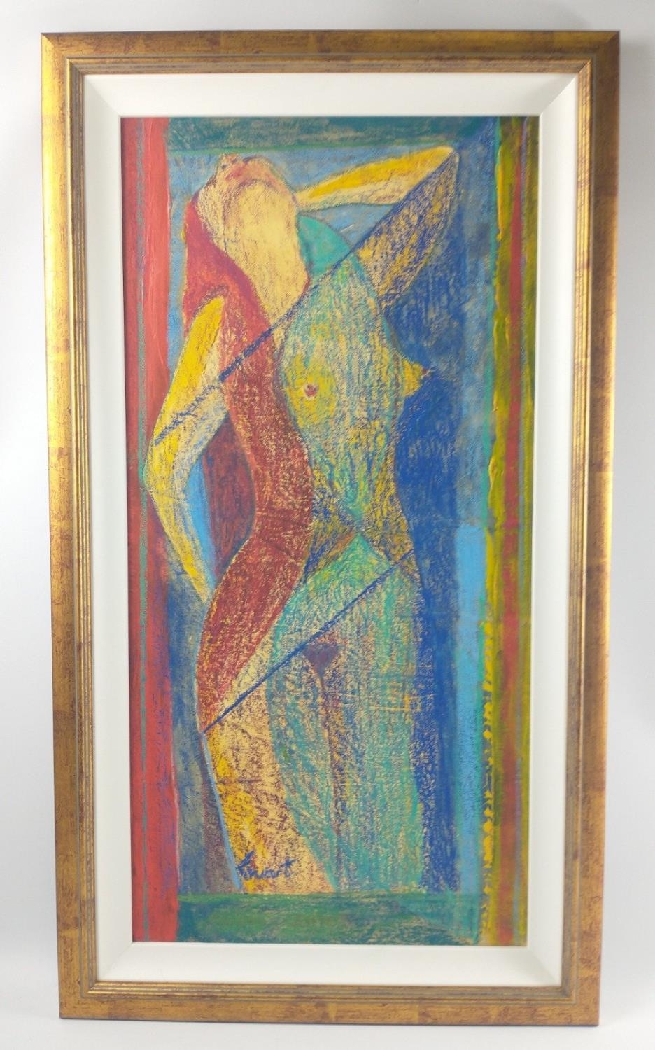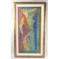 SCOTTISH ARTIST MATT EWART 'Girl in Veil' mixed media on linen signed bottom left L36cm x H77cm