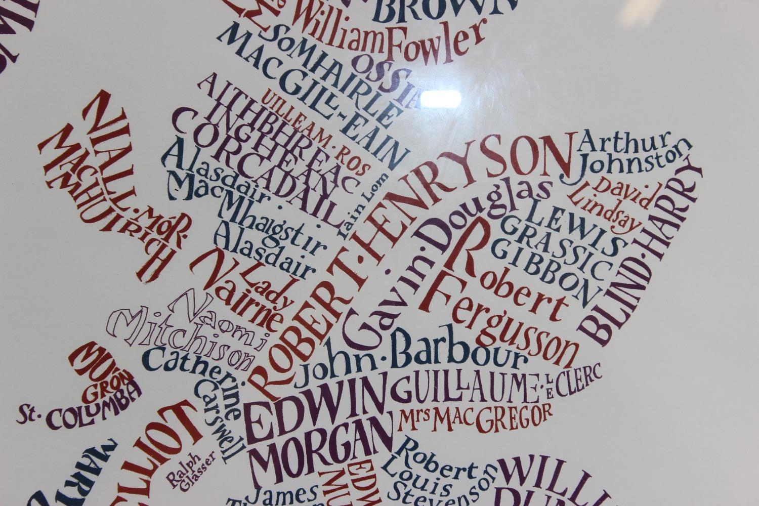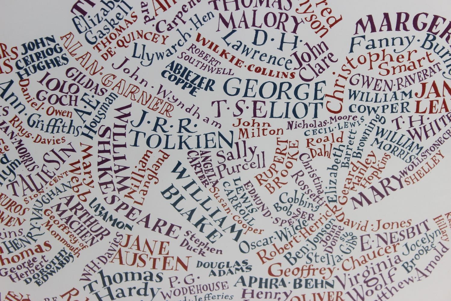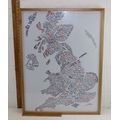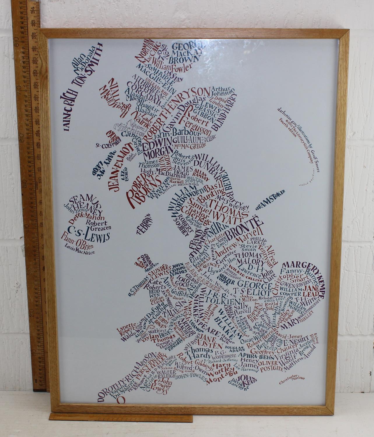 Poster of the British Isles cleverly showing in text the birth place of the UK's most famous authors, Framed & Glazed