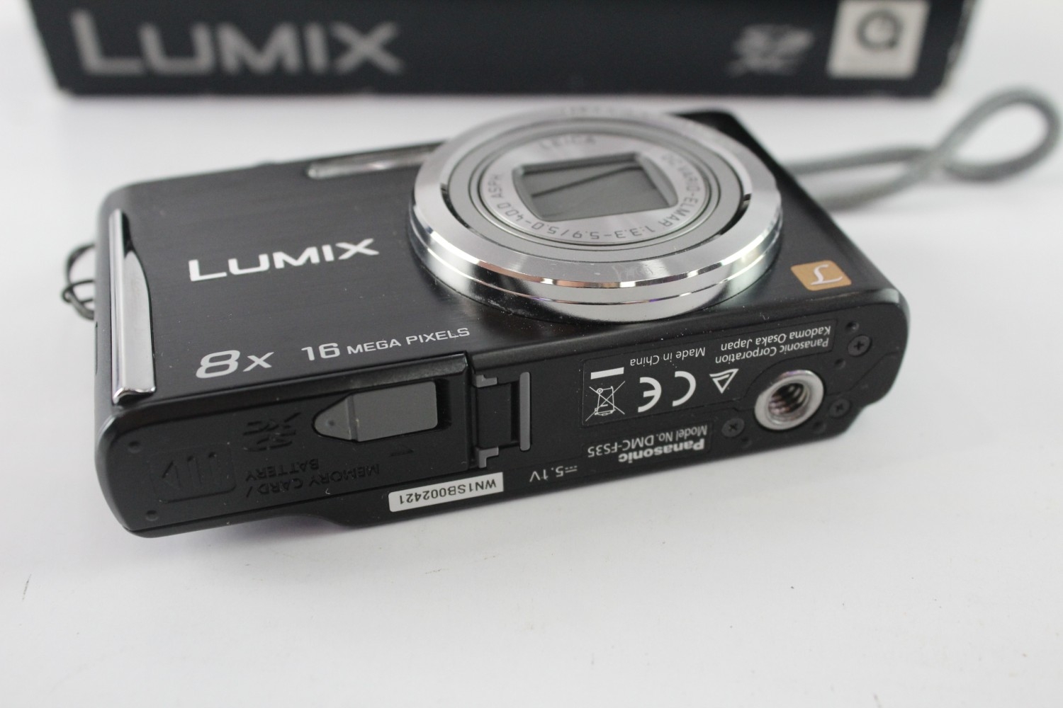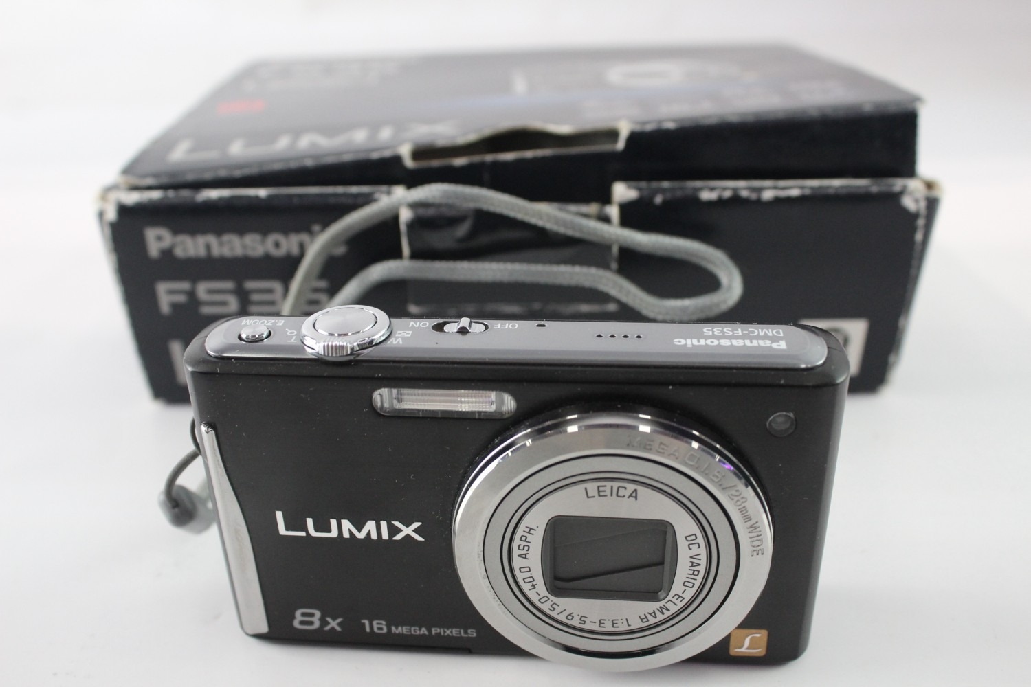 A boxed Panasonic Lumix DMC-FS35 16.1mp CCD sensor compact digital camera with charger, cables, software disc and instruction manual