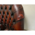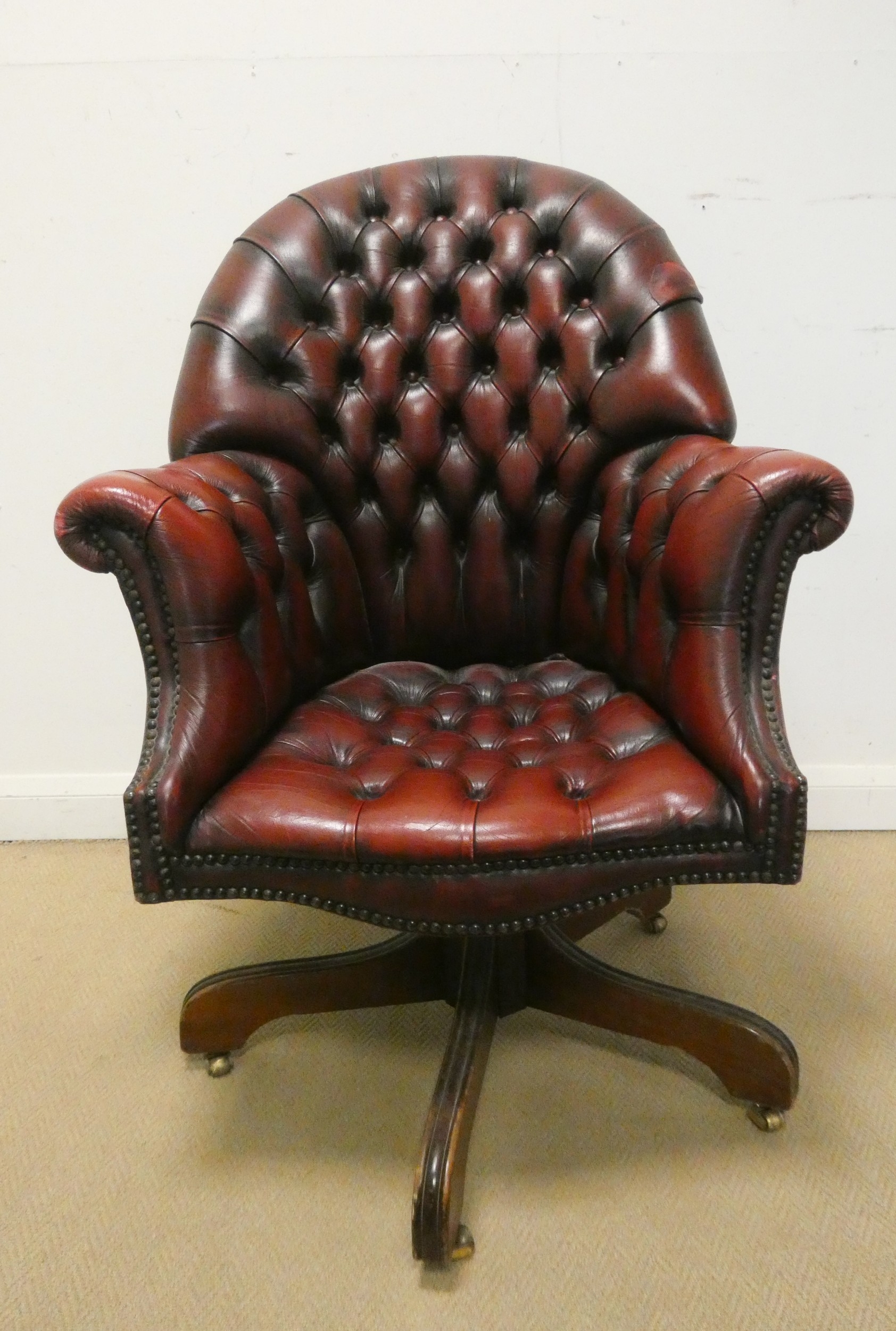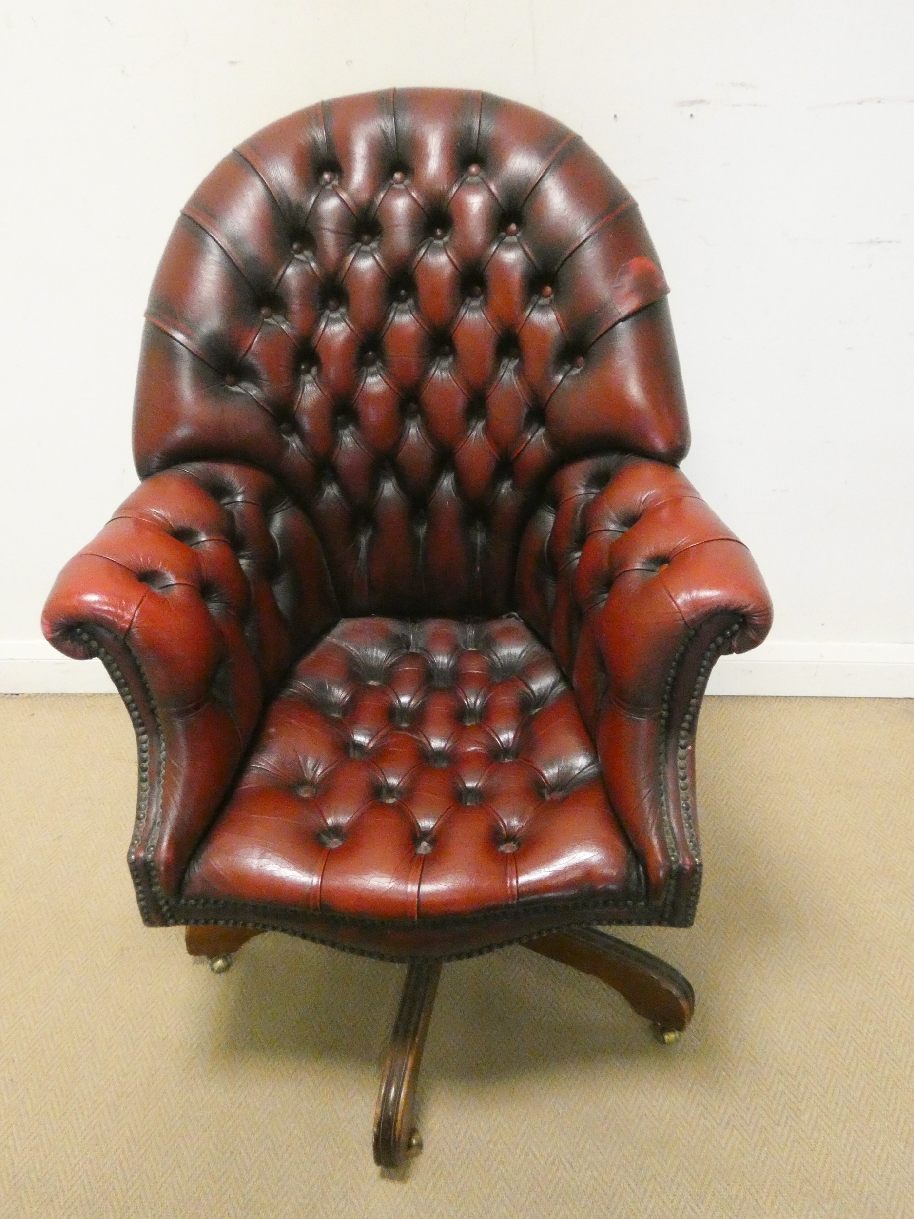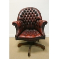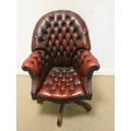 A red buttoned leather revolving office elbow chair