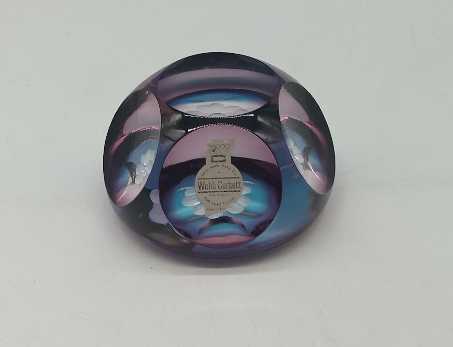 Webb Corbett Glass Multi Faceted Flower Paperweight. 8cm Diameter at base.